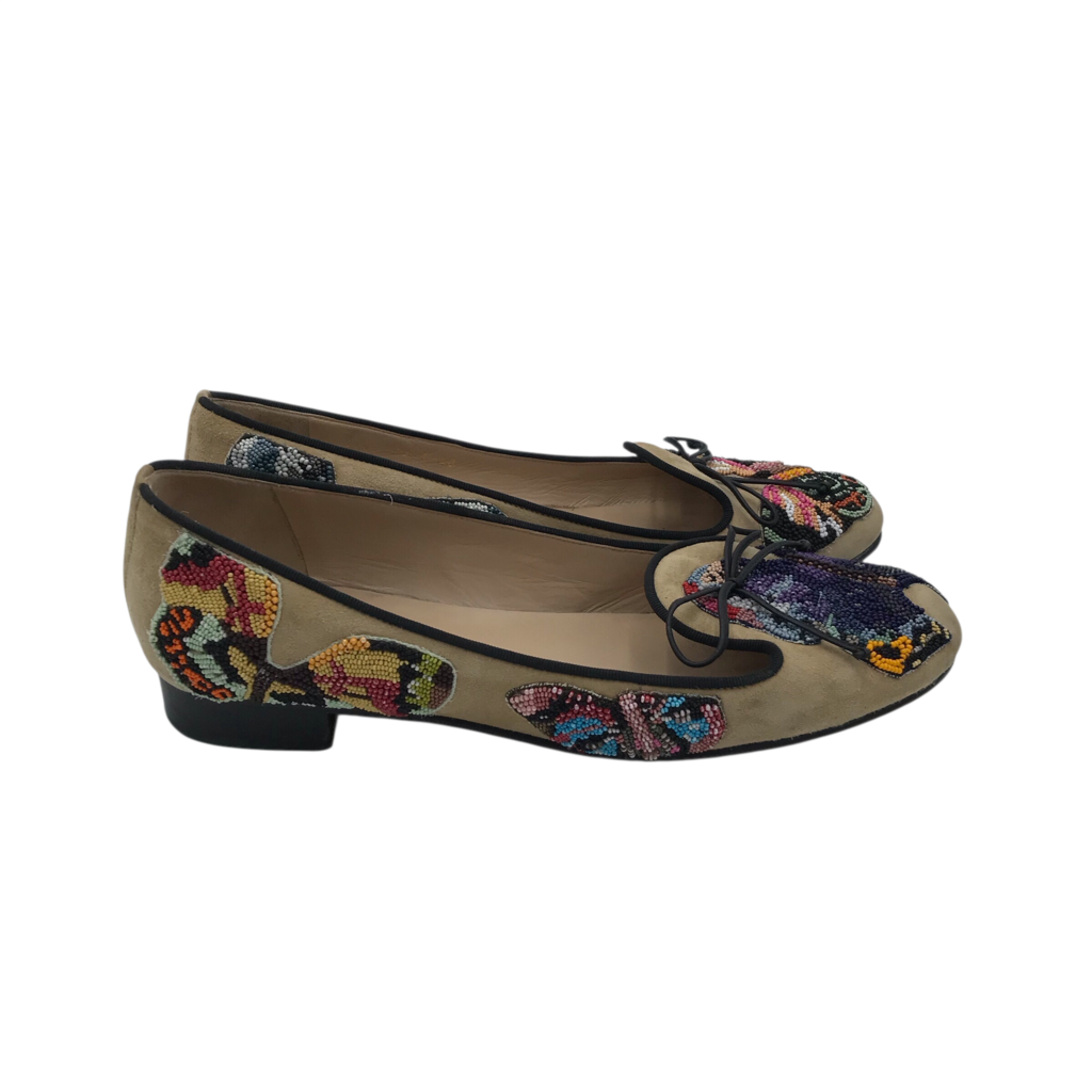 Giuseppe Zanotti's creations are true works of art, reflecting an artistic vision that pushes boundaries and embraces opulence. Each design showcases meticulous attention to detail, luxurious materials, and intricate embellishments that exude a sense of glamour and sophistication. Explore our collection at Too Good To Be Threw and elevate your style with the captivating designs of this renowned luxury brand.