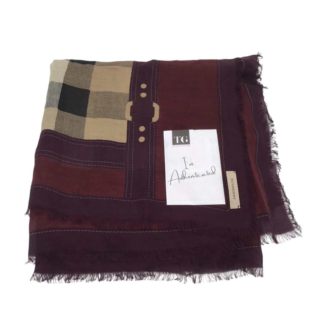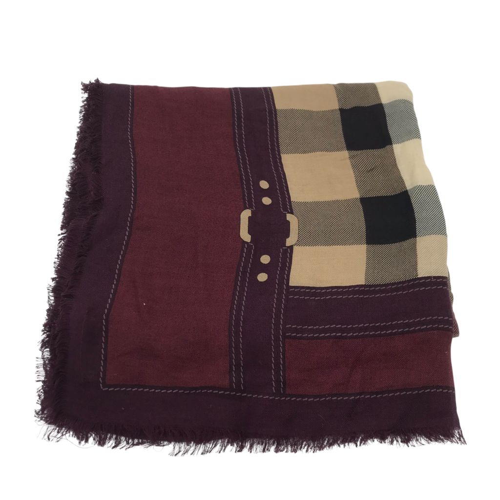 BURBERRY EXPLODED CHECK SCARF LUXE ACCESSORIES BURGUNDY/TAUPE
