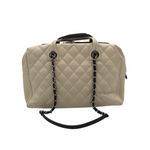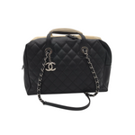 CHANEL LEATHER FEATHERWEIGHT BOWLING BAG LUXE HANDBAG BLACK/IVORY