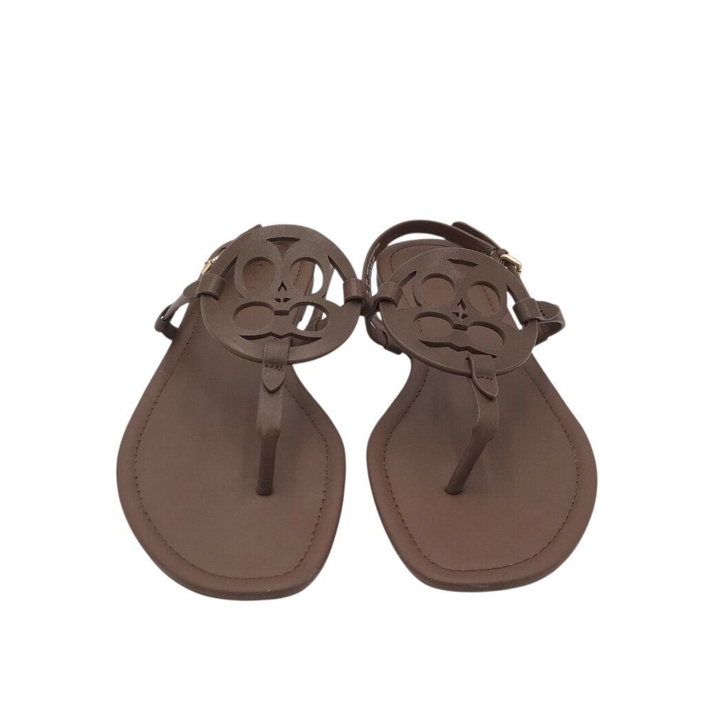 COACH RET$150 LOGO LEATHER FLAT SANDAL SHOES BROWN 8.5