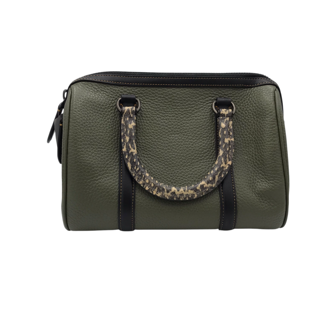 COACH RET$450 SMALL SNAKESKIN DETAIL HANDBAG OLIVE CREAM