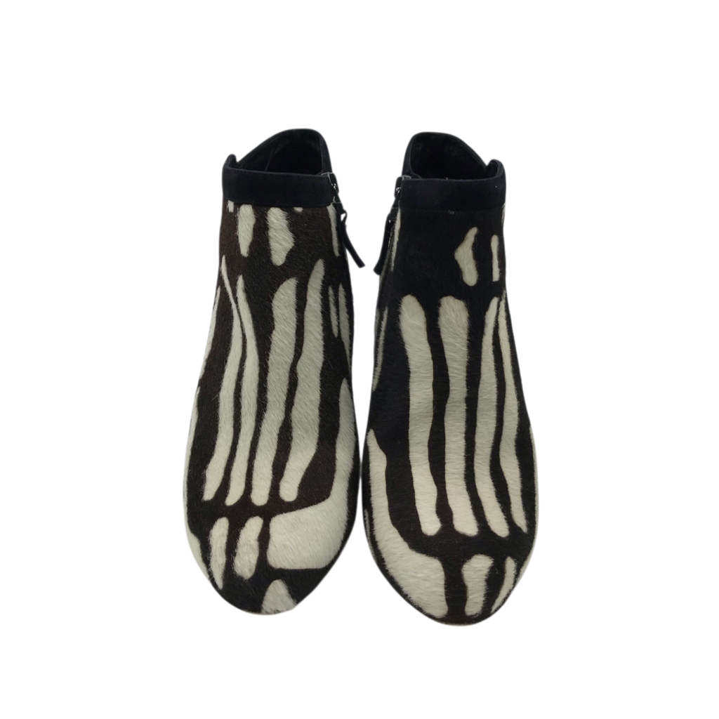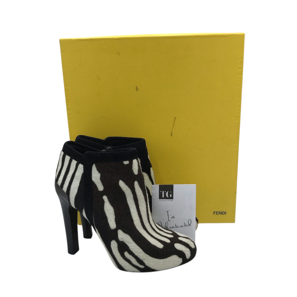 FENDI ZEBRA PRINT PONY HAIR ANKLE LUXE BOOTS BROWN/TAUPE 40
