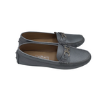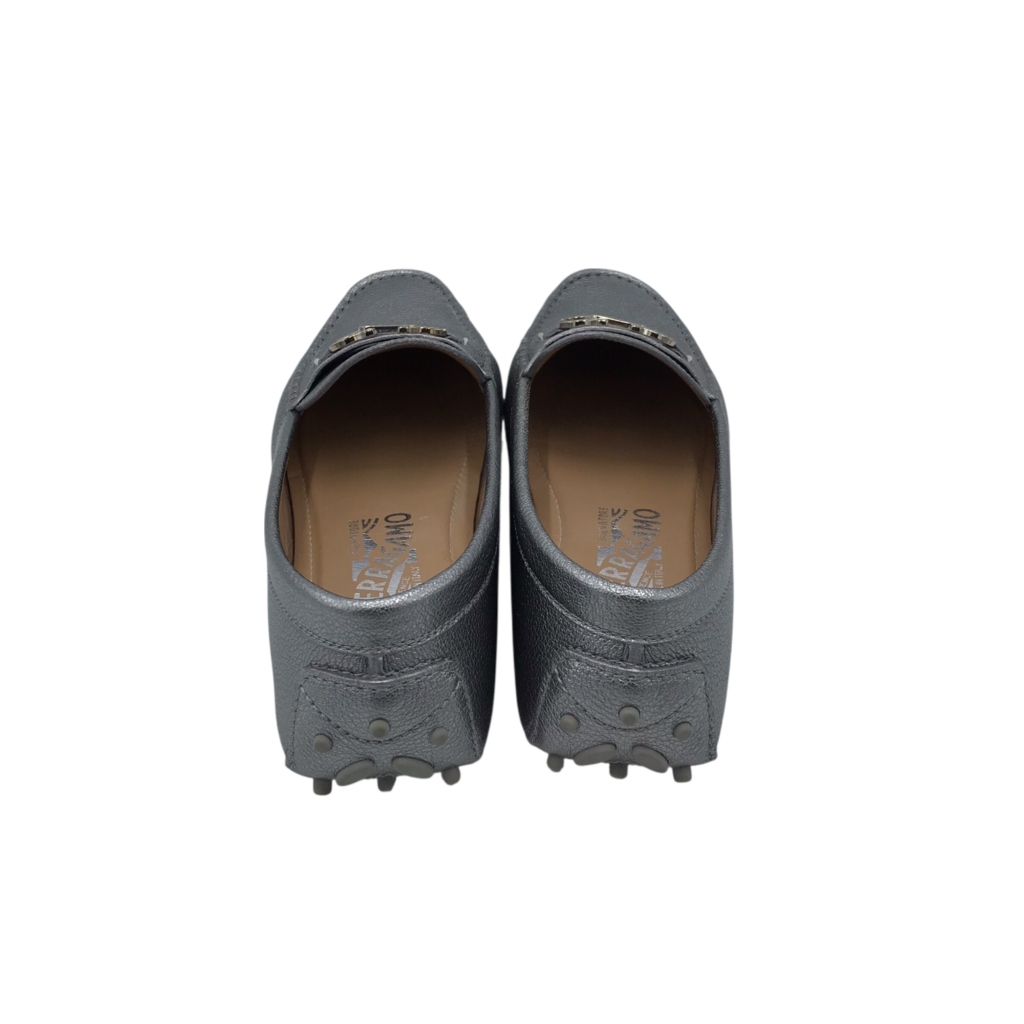 SALVATORE FERRAGAMO LEATHER LOAFERS DESIGNER SHOES SILVER 7.5M