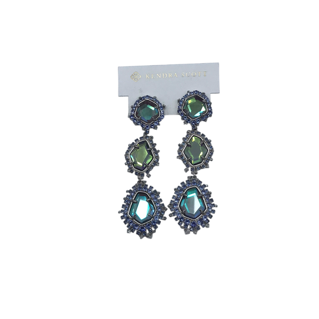 KENDRA SCOTT NWT$250 CLIP ON DANGLE EARRINGS SILVER BLUE