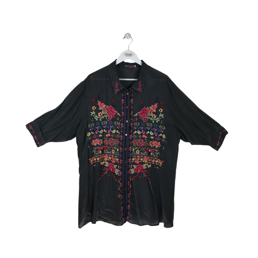 JOHNNY WAS EMBROIDERED LONG SLEEVE DESIGNER BLOUSE GREY XXL
