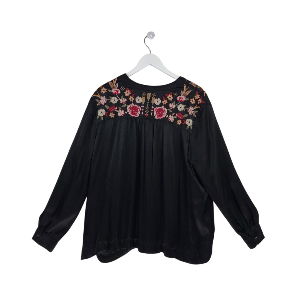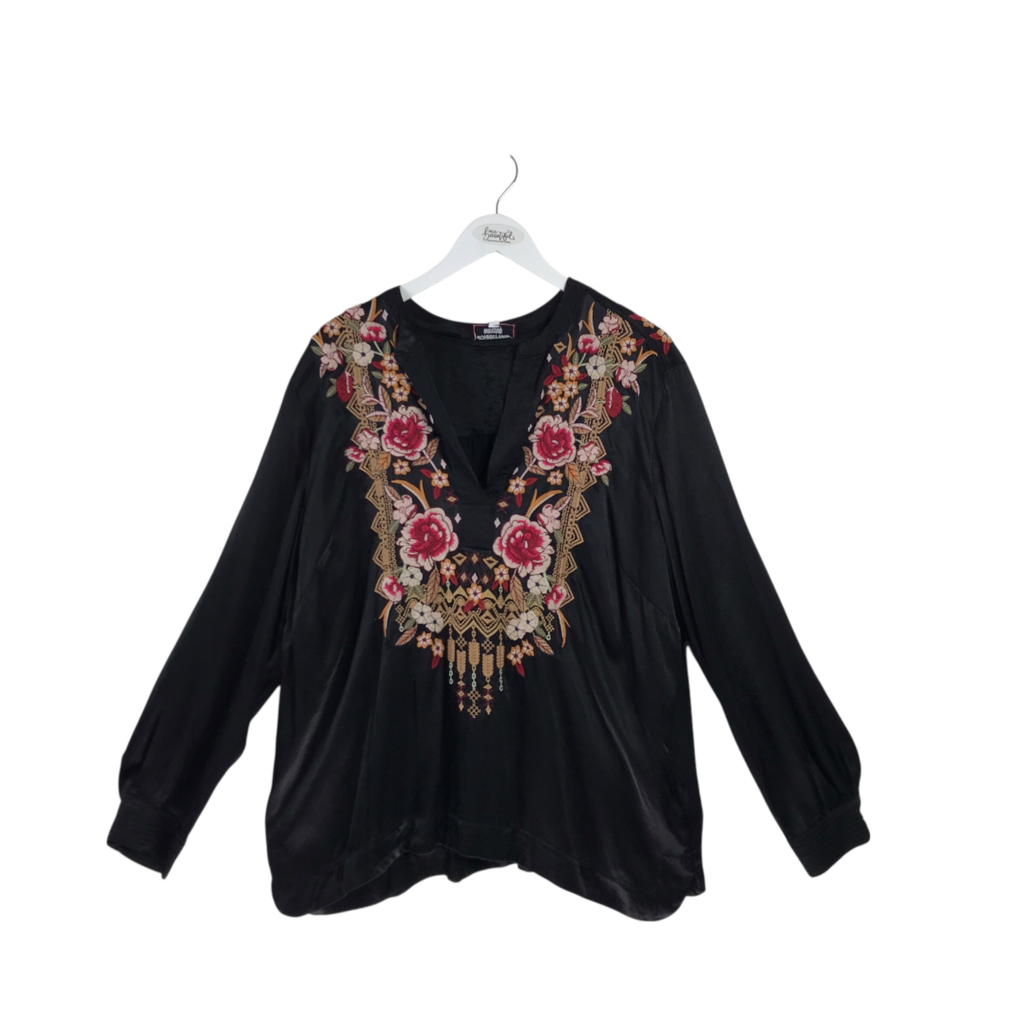 JOHNNY WAS EMBROIDERED LONG SLEEVE DESIGNER TOP BLACK RED 1X