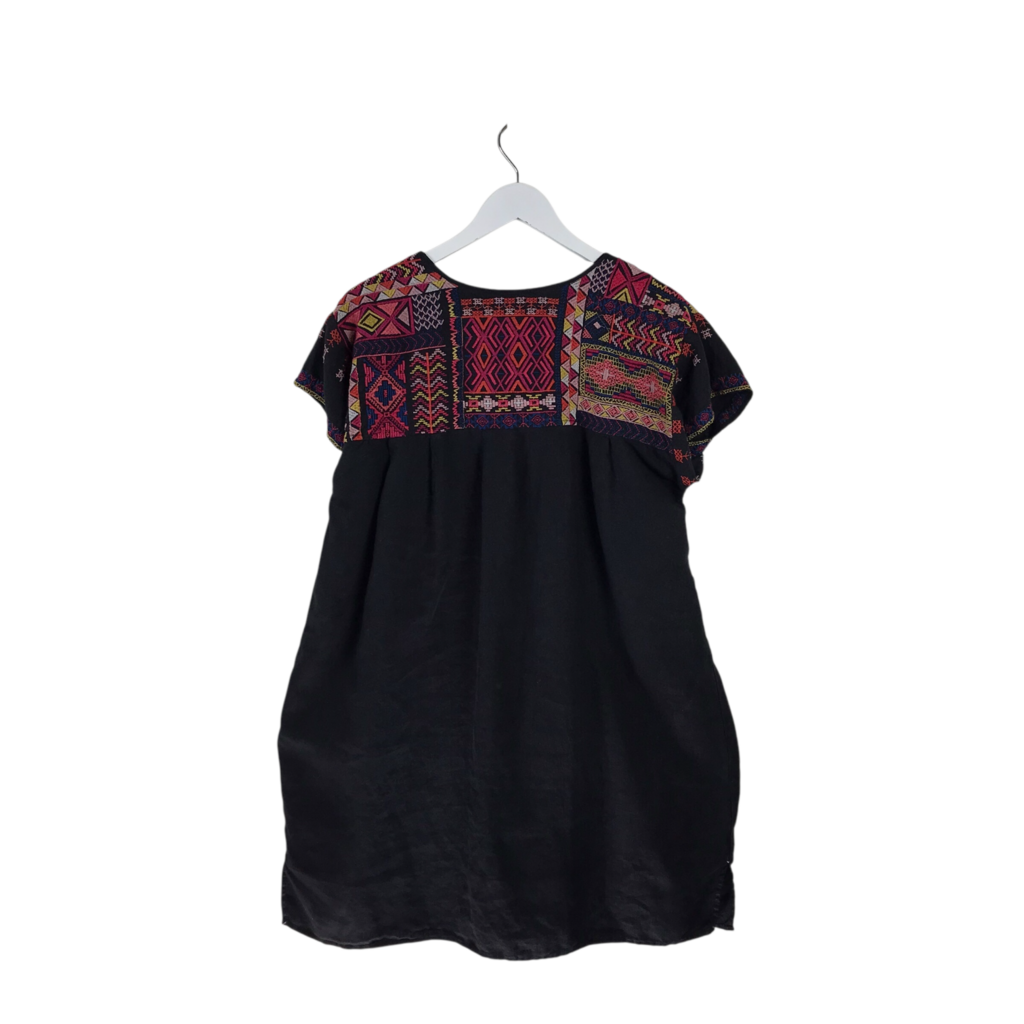 JOHNNY WAS LINEN EMBROIDERED DESIGNER DRESS BLACK CORAL LARGE