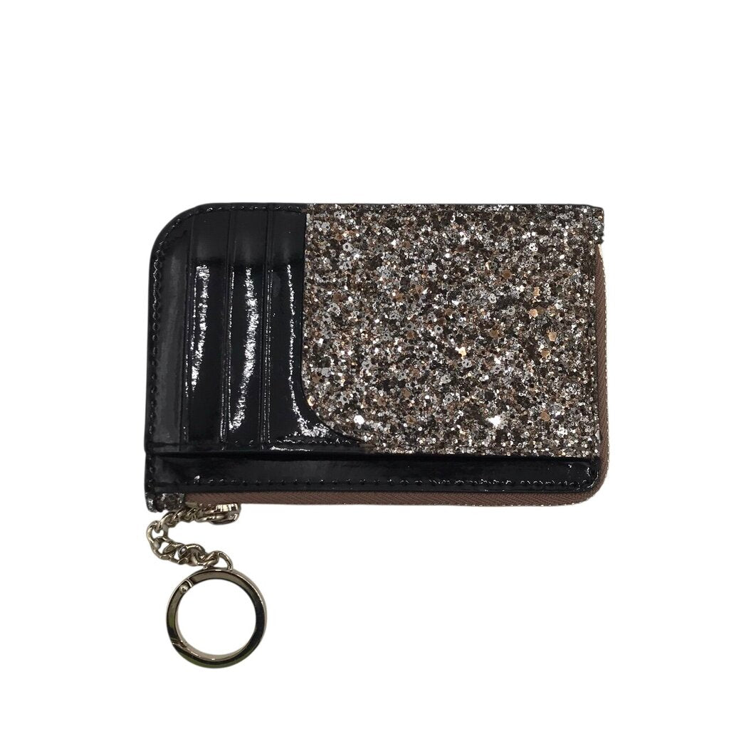 KATE SPADE RET$99 GLITTER KEYCHAIN WALLET SILVER BLACK