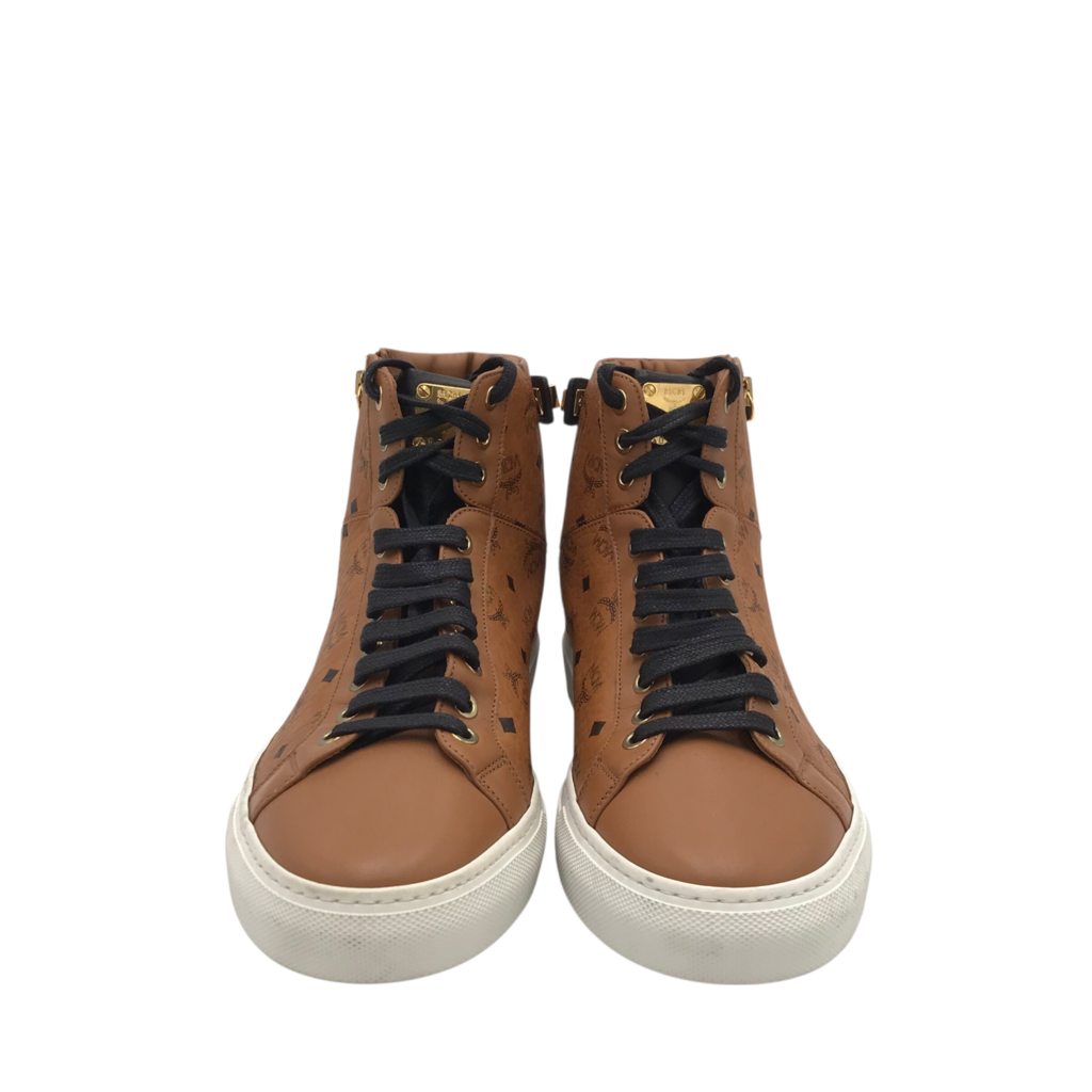 MCM LEATHER HIGH TOP MEN SHOE BROWN 41