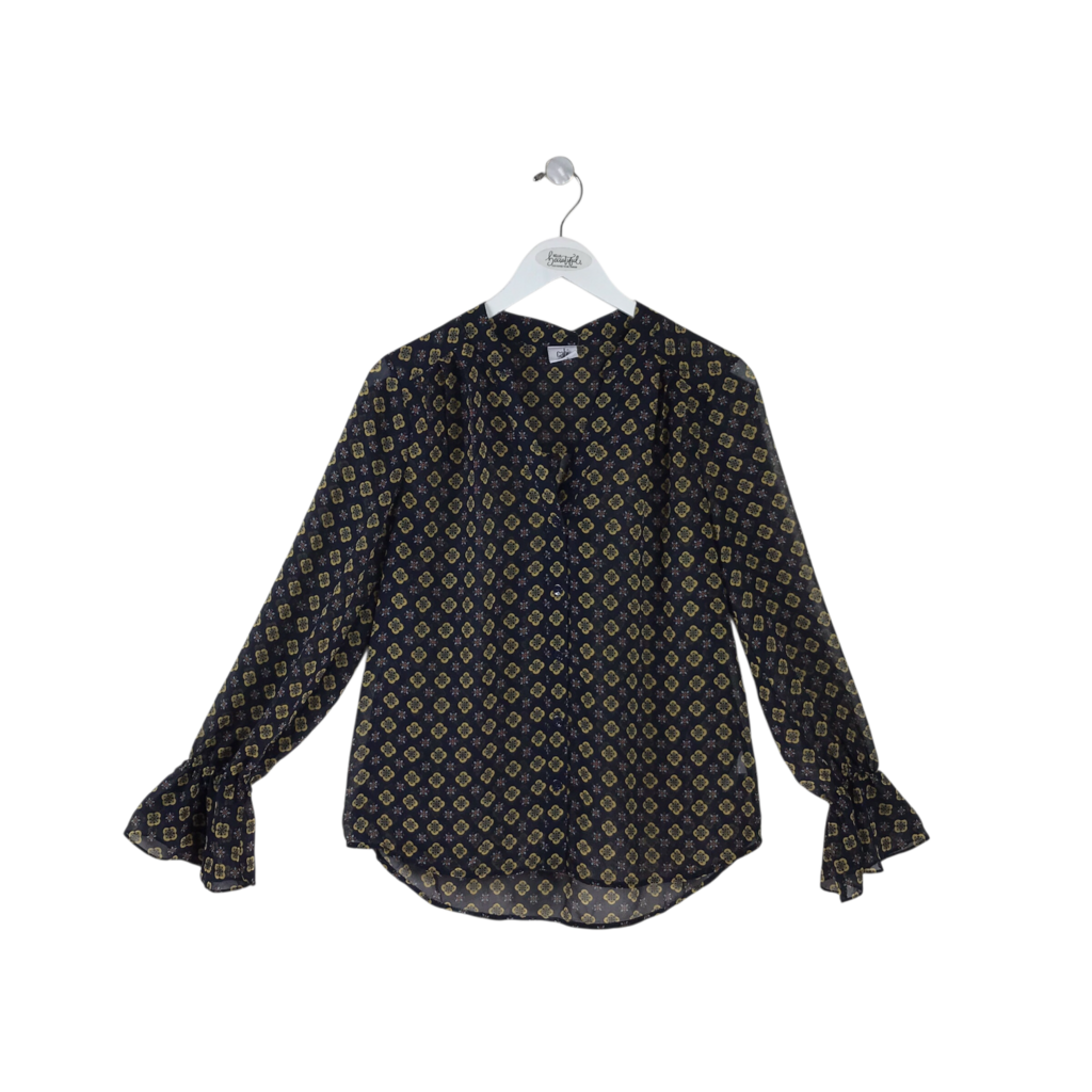 CABI LONG SLEEVE BLOUSE NAVY YELLOW SMALL