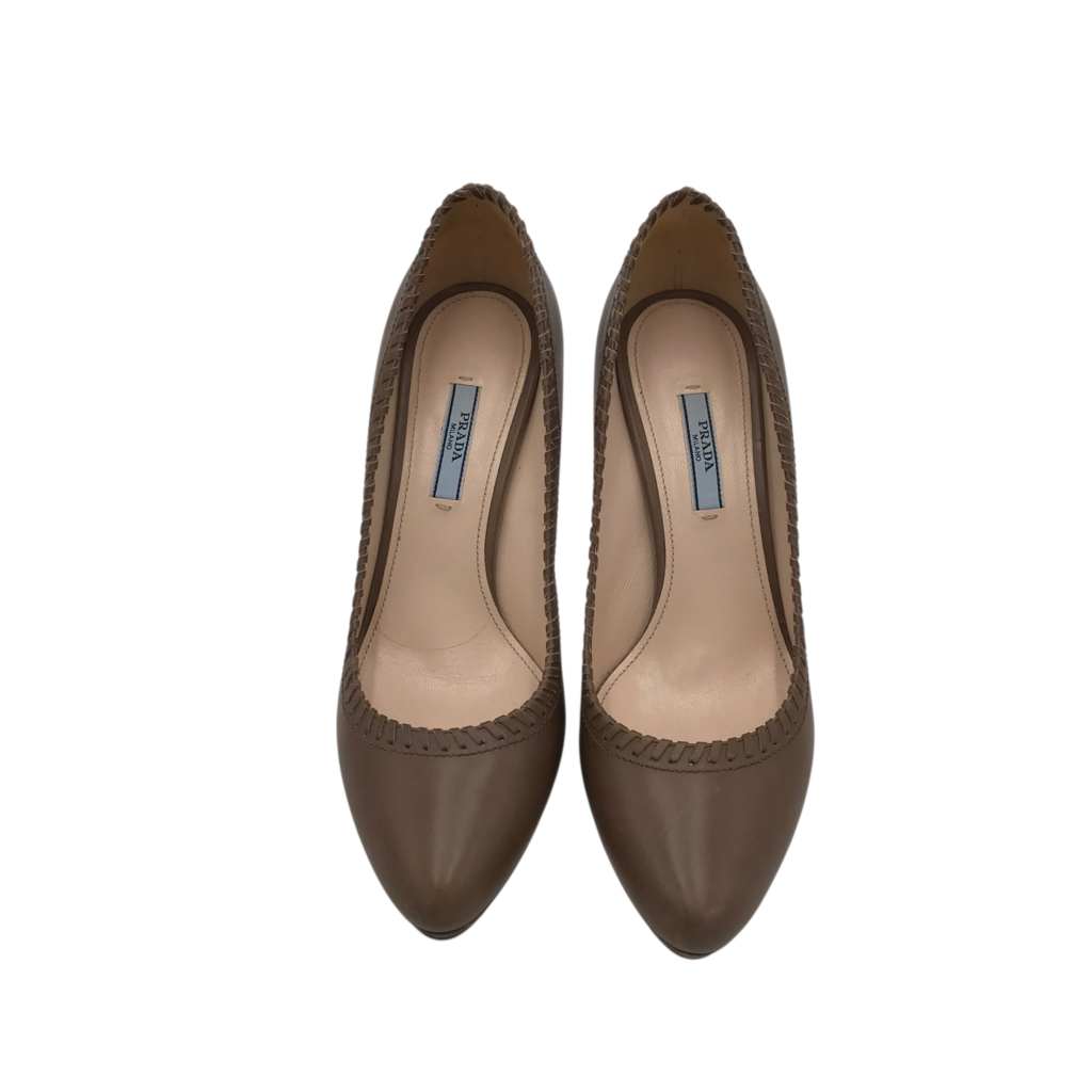 PRADA "FUMO" CALFSKIN LEATHER PUMPS LUXE SHOES TAUPE 39