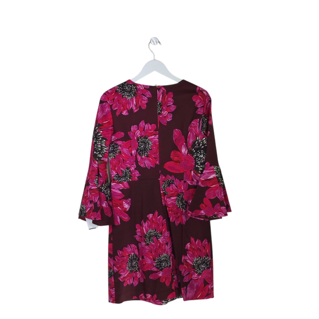 TRINA TURK FLORAL FLARE SLEEVE DESIGNER DRESS MAROON FUCHSIA 10