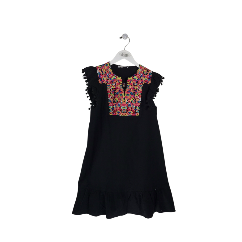 EMBROIDERED SLEEVELESS DRESS BLACK MULTI SMALL