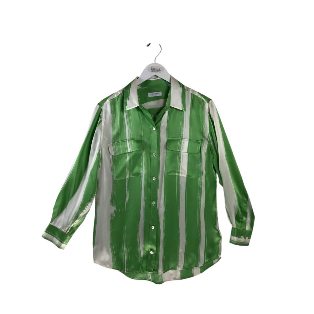 EQUIPMENT FEMME LONG SLEEVE DESIGNER BLOUSE GREEN WHITE MEDIUM