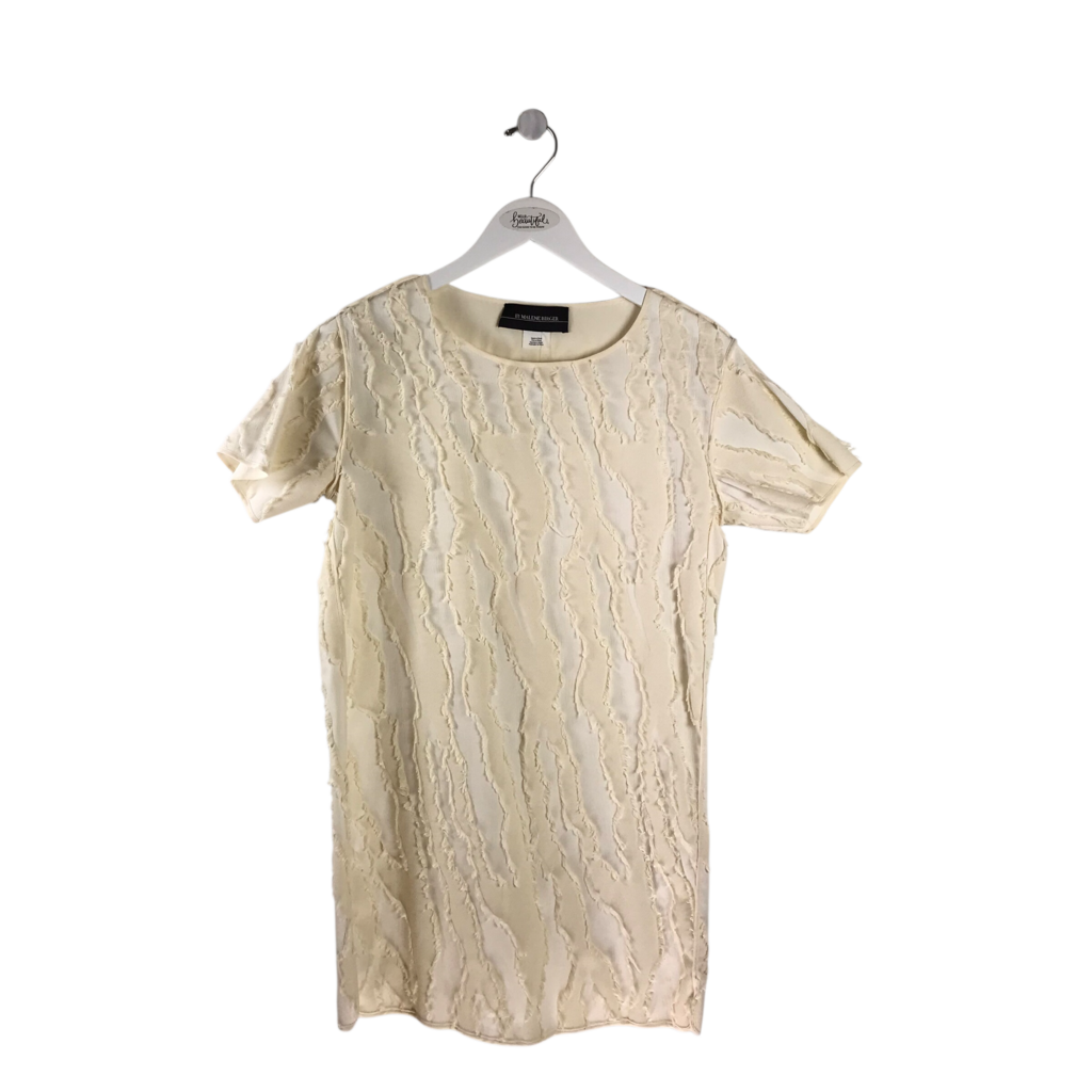 MALENE BIRGER FRINGE SHORT SLEEVE DESIGNER DRESS BEIGE XS