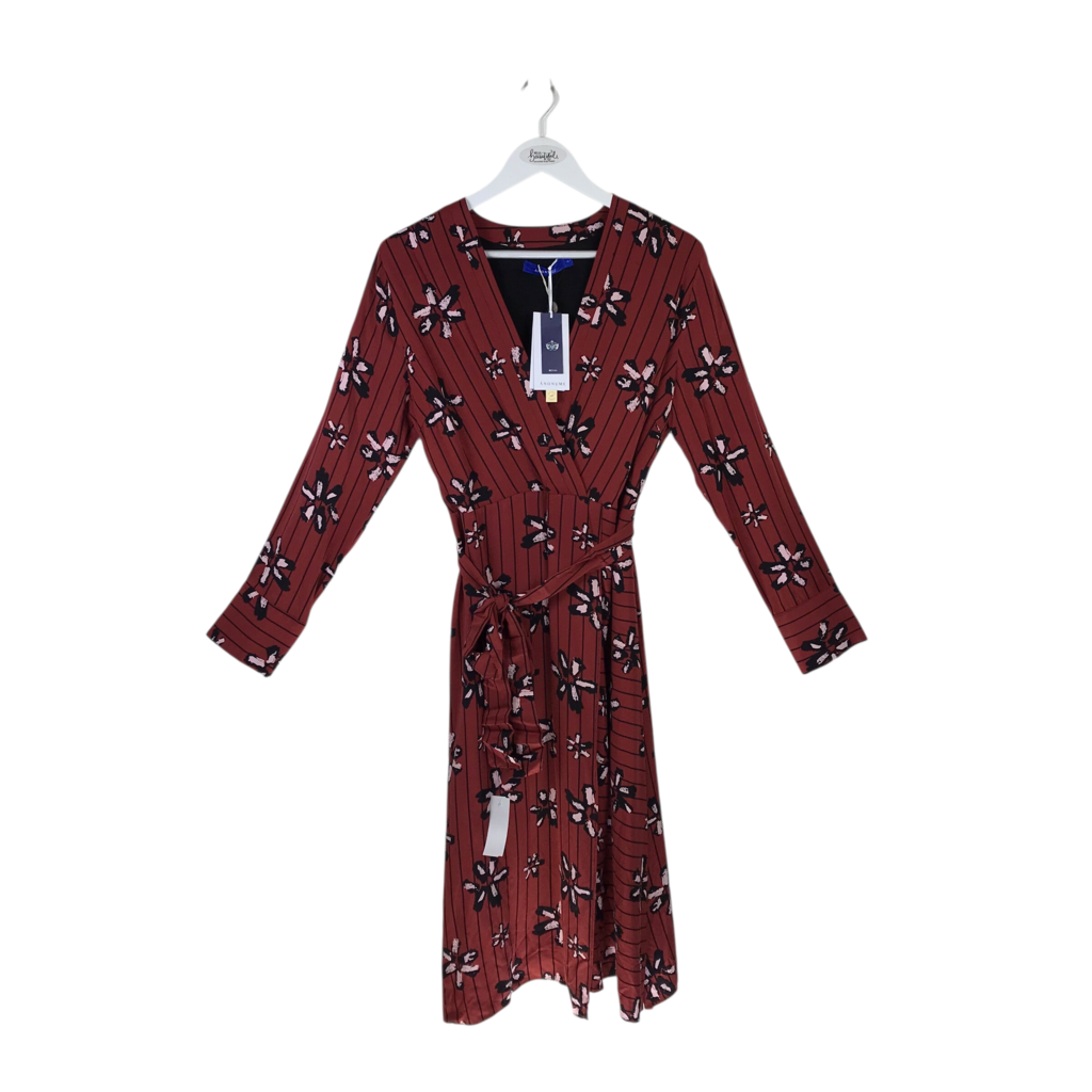 NWT LONG SLEEVE MIDI DESIGNER DRESS MAROON BLACK LARGE