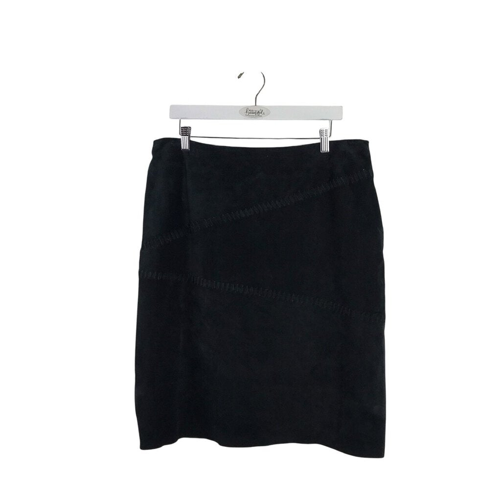 SUEDE LEATHER PENCIL DESIGNER SKIRT BLACK 16