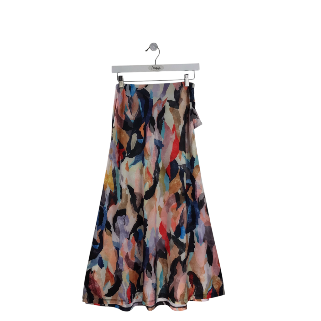 2PC PRINT TOP/SKIRT MAXI DESIGNER OUTFIT RED TAN SMALL