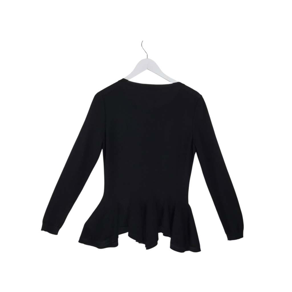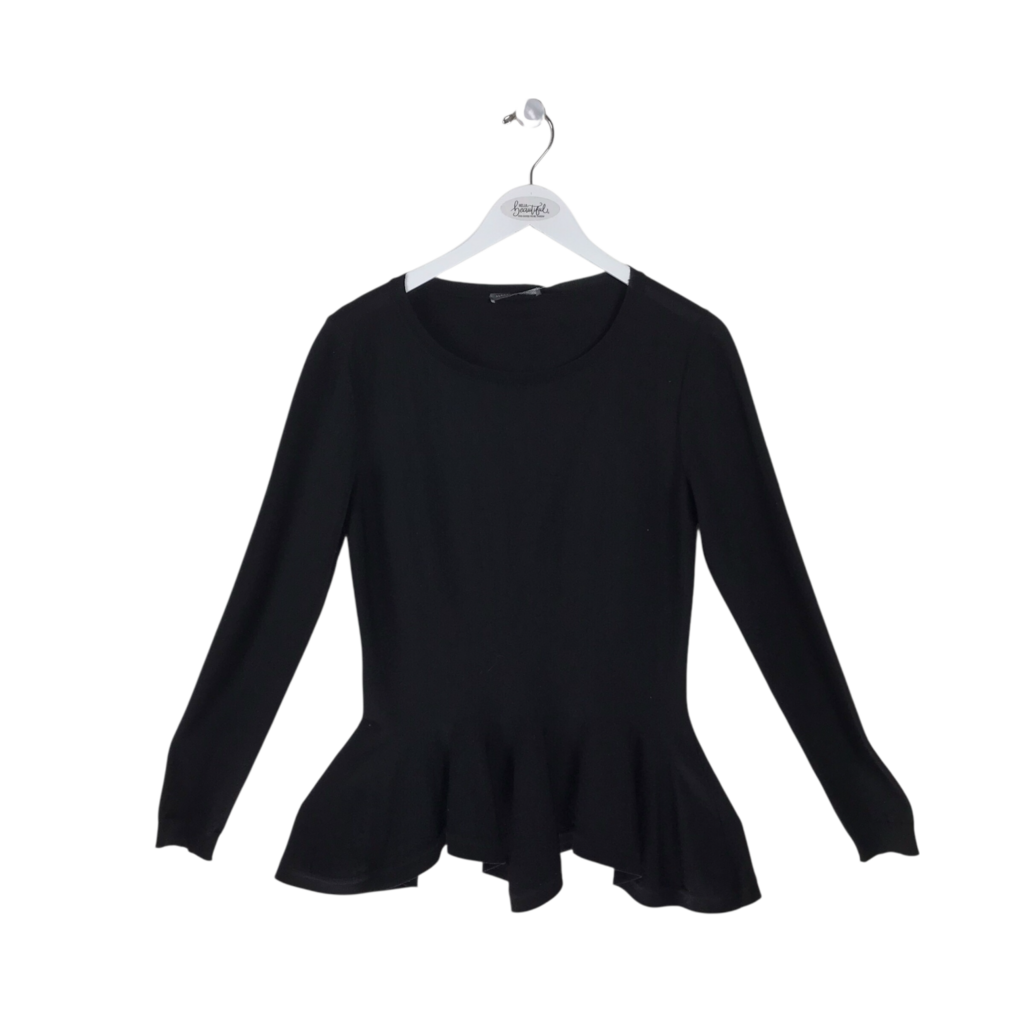 ALEXANDER McQUEEN WOOL PEPLUM RUFFLED LONG SLEEVE LUXE TOP BLACK MEDIUM
