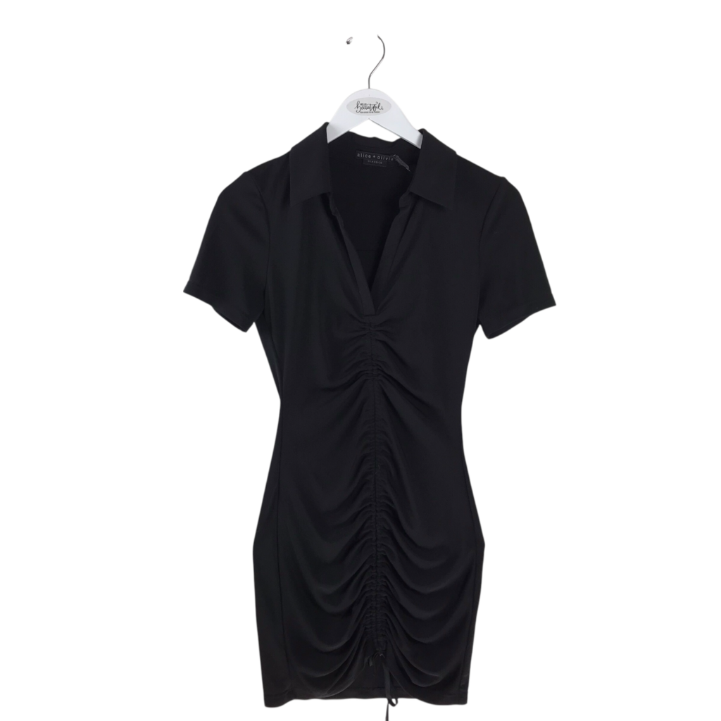ALICE + OLIVIA SHORT SLEEVE DESIGNER DRESS BLACK XSMALL