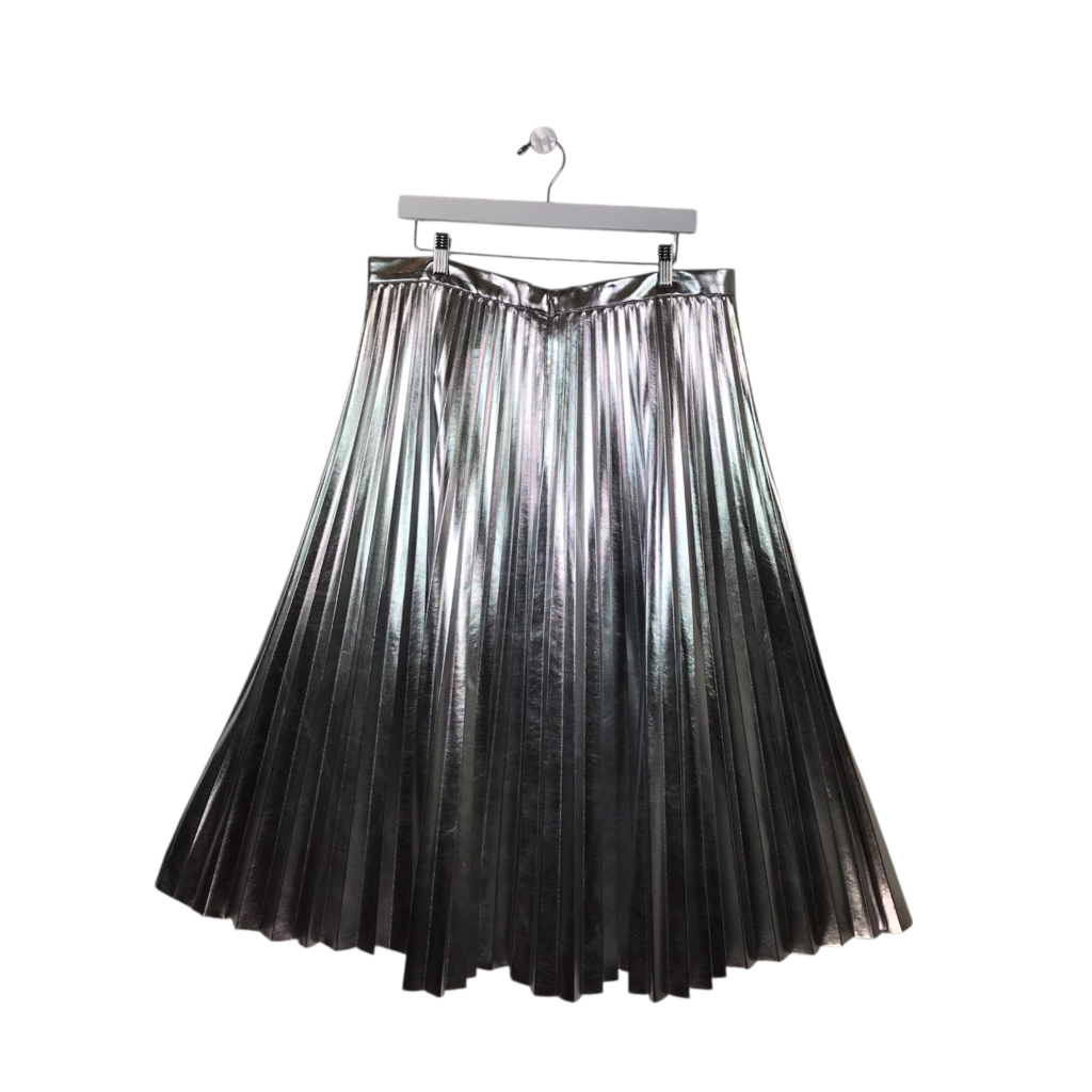 ANN TAYLOR PLEATED FAUX LEATHER METALLIC SKIRT SILVER MEDIUM