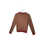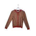 ANN TAYLOR PRINT LONGSLEEVE CARDIGAN BEIGE RED LARGE