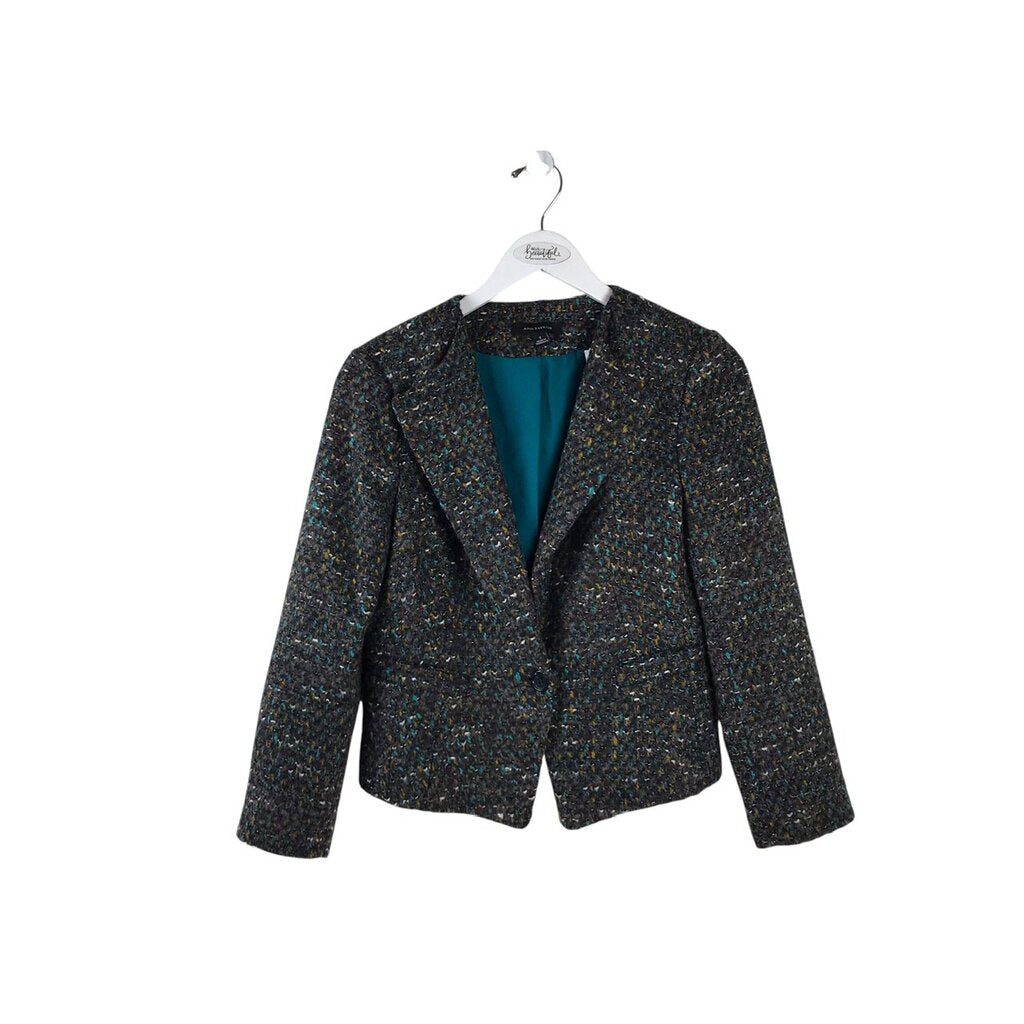 ANN TAYLOR TWEED LONG SLEEVE BLAZER TEAL BROWN 2
