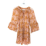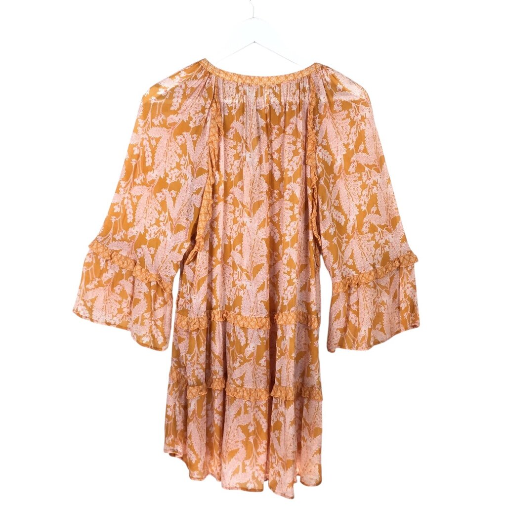 ANTHROPOLOGIE FLORAL 3/4 SLEEVE DRESS ORANGE WHITE LARGE