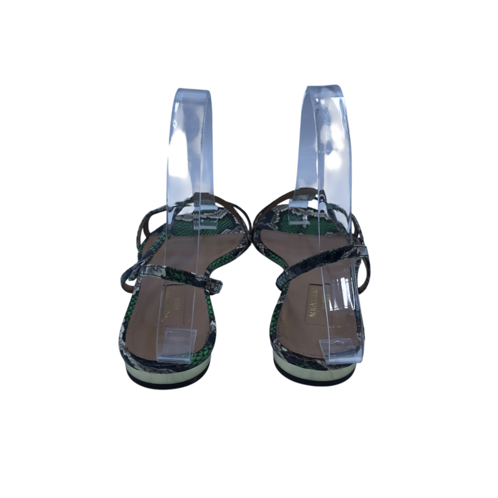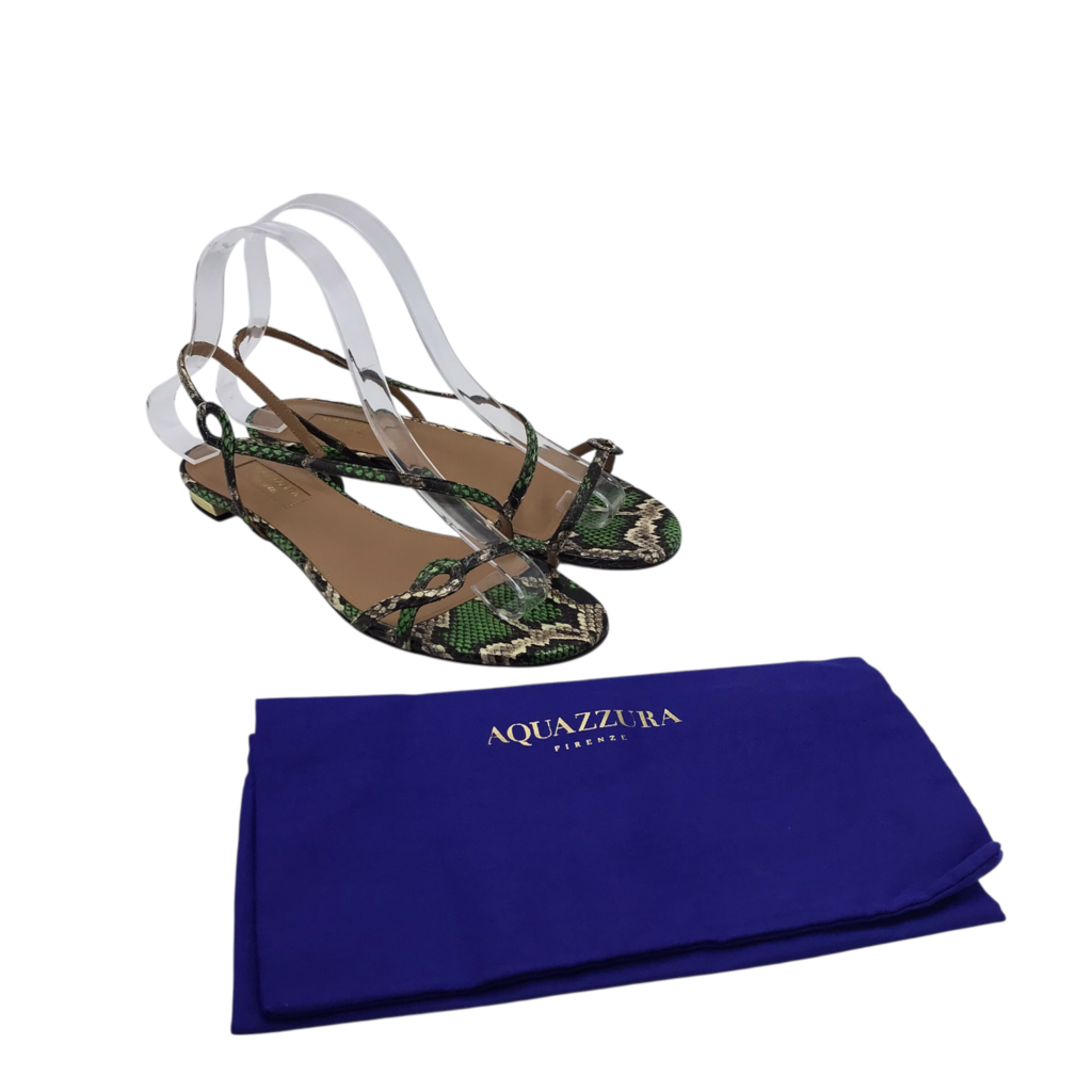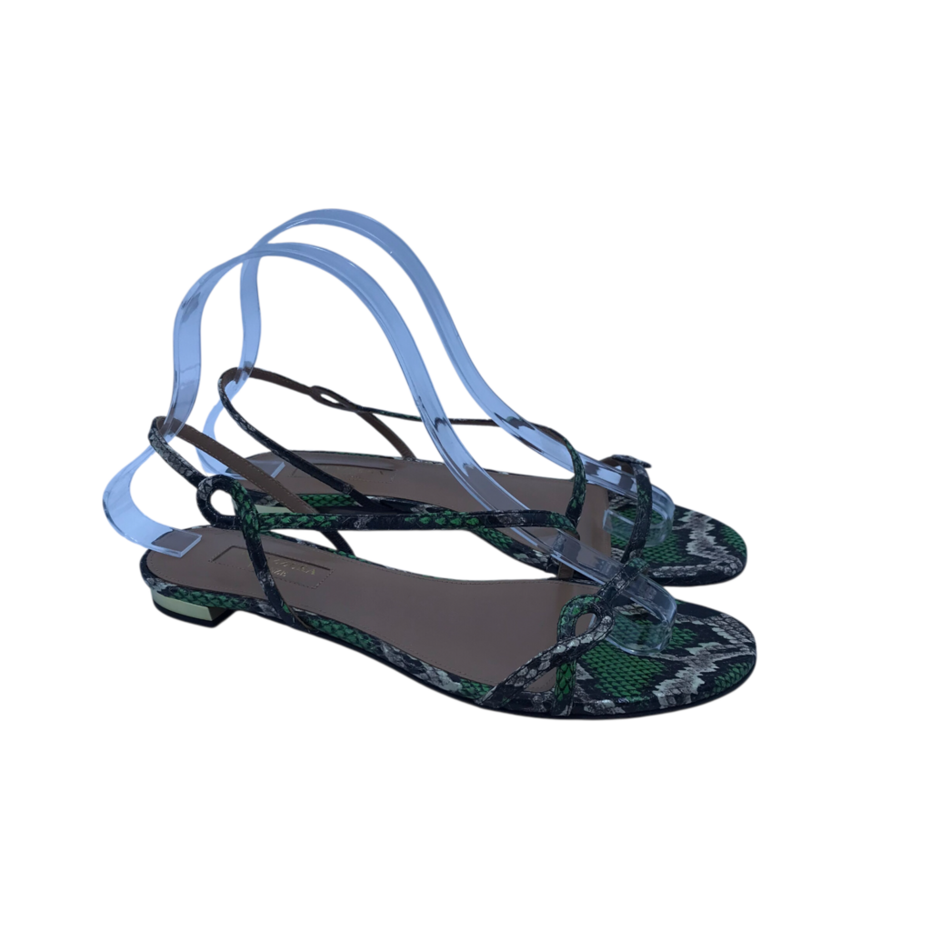 AQUAZZURA PYTHON FLAT SANDAL DESIGNER SHOES GREEN CREAM 36.5
