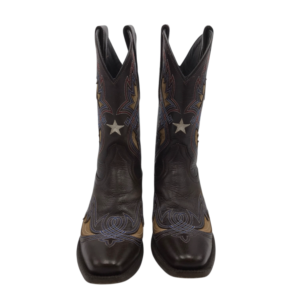 ARIAT WESTERN SQUARE TOE BOOTS BROWN BLUE 8.5B