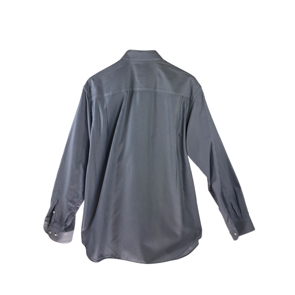 ARMANI COLLEZIONI STRIPE LONG SLEEVE MEN SHIRT GRAY BLUE 16.5