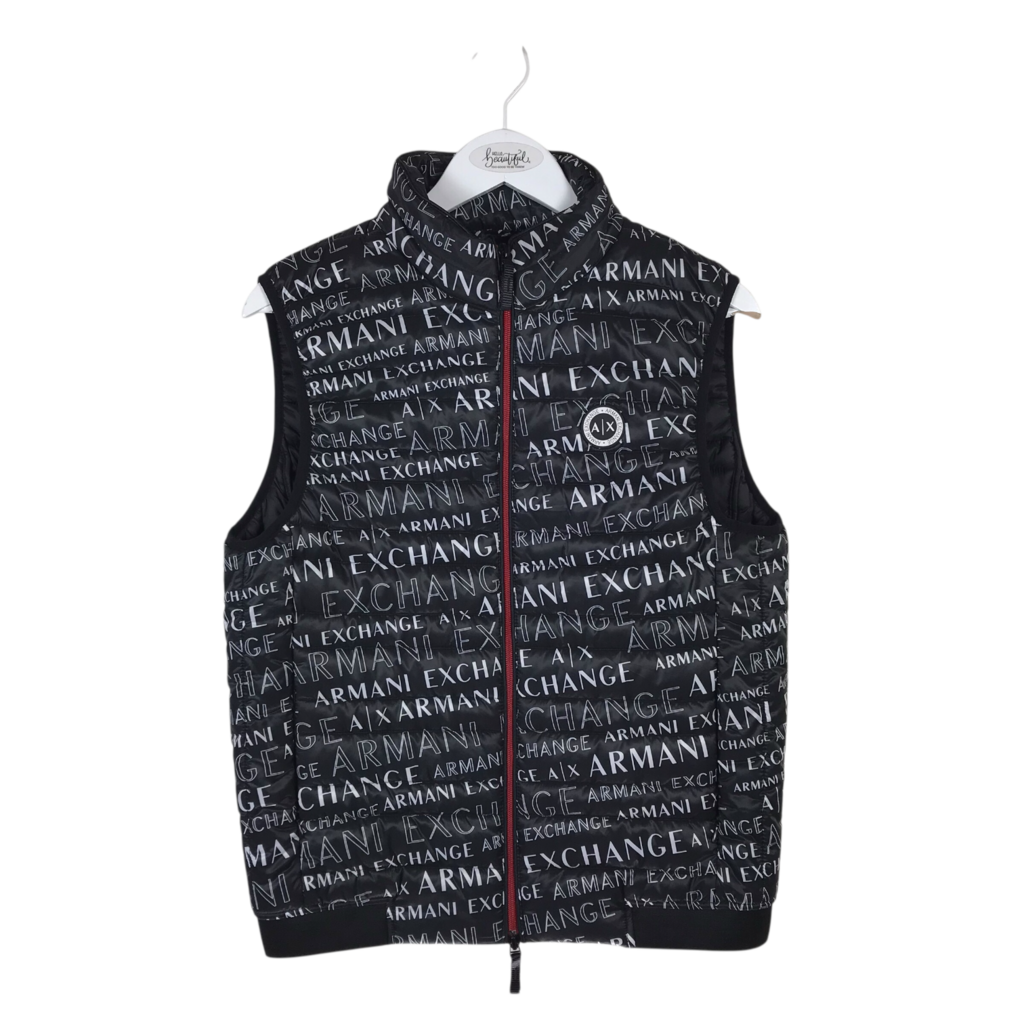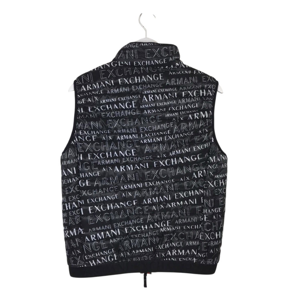 ARMANI EXCHANGE LOGO QUILTED ZIP MEN VEST BLACK WHITE MEDIUM