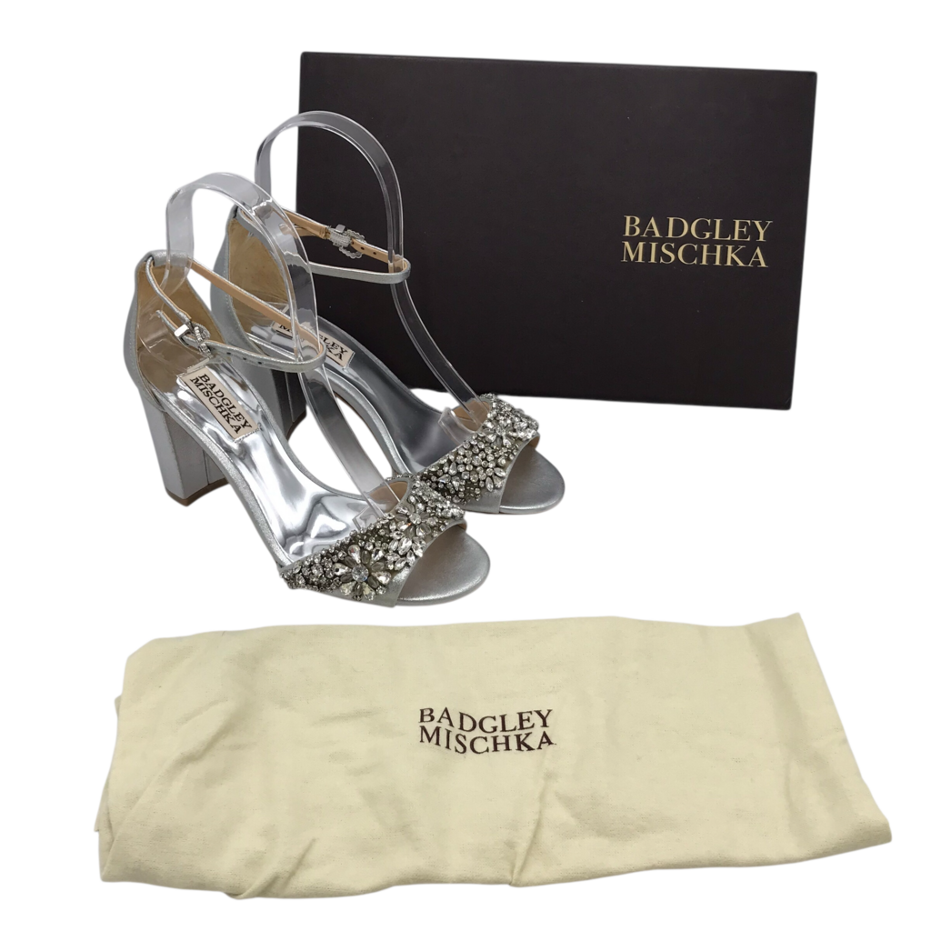 BADGLEY MISCHKA ANKLE STRAP HEEL SHOES SILVER 5.5