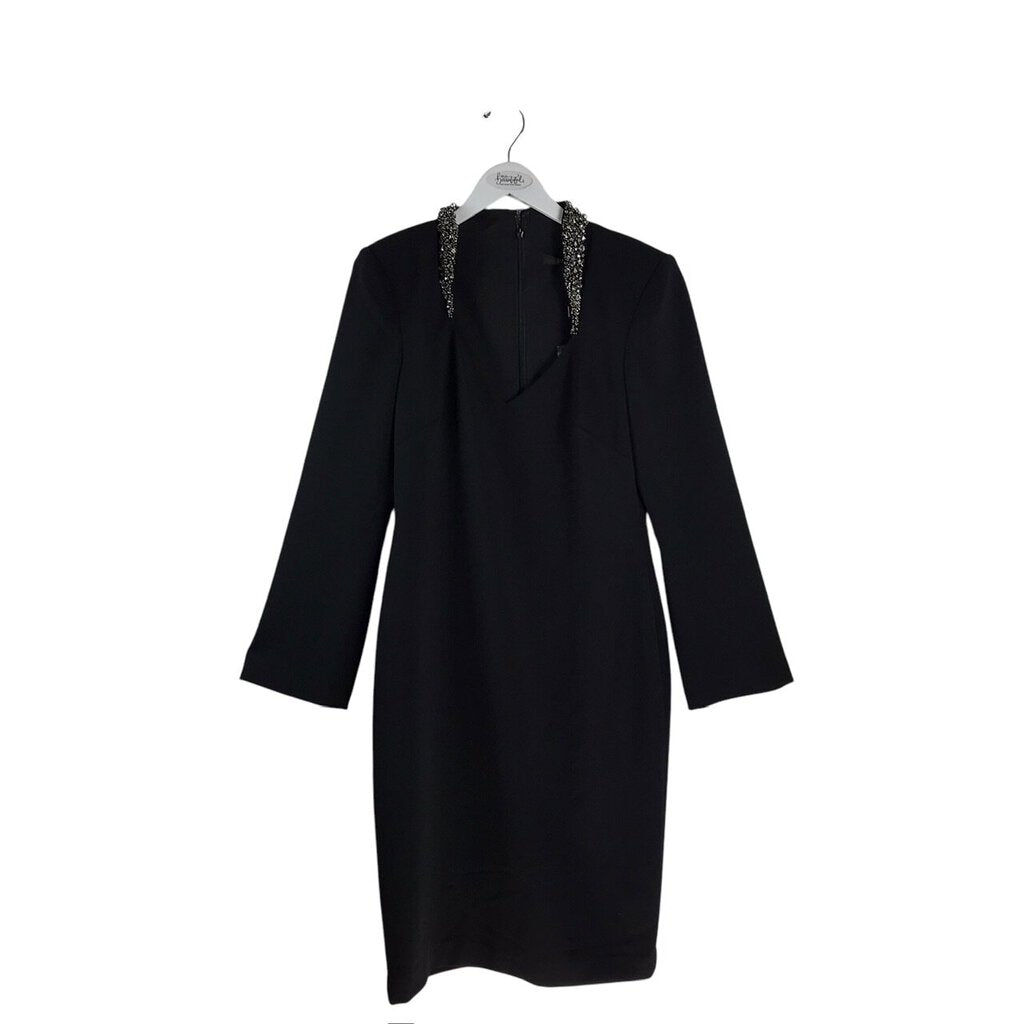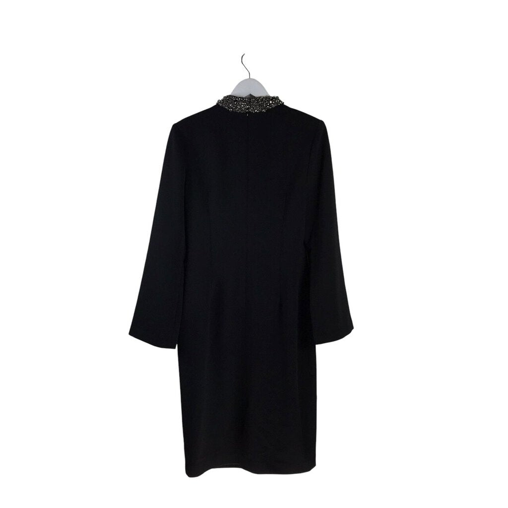 BADGLEY MISCHKA BEAD TRIM LONG SLEEVE DESIGNER DRESS BLACK 12