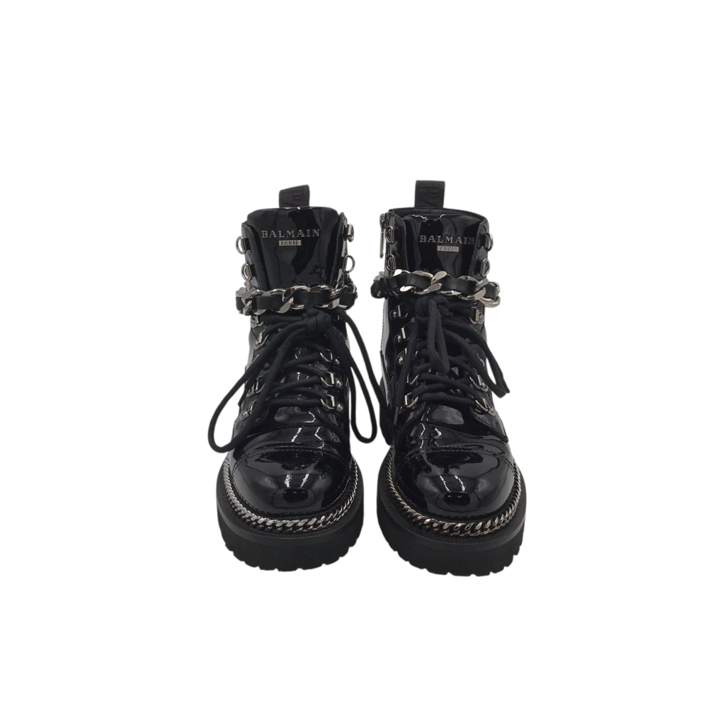 BALMAIN RET$1,995 COMBAT LACE UP LUXE BOOTS BLACK 6.5B
