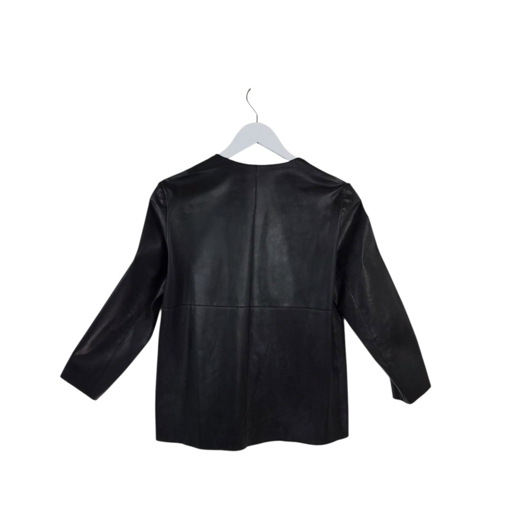 BA&SH RET$595 LAMB LEATHER ZIP DESIGNER JACKET BLACK 2