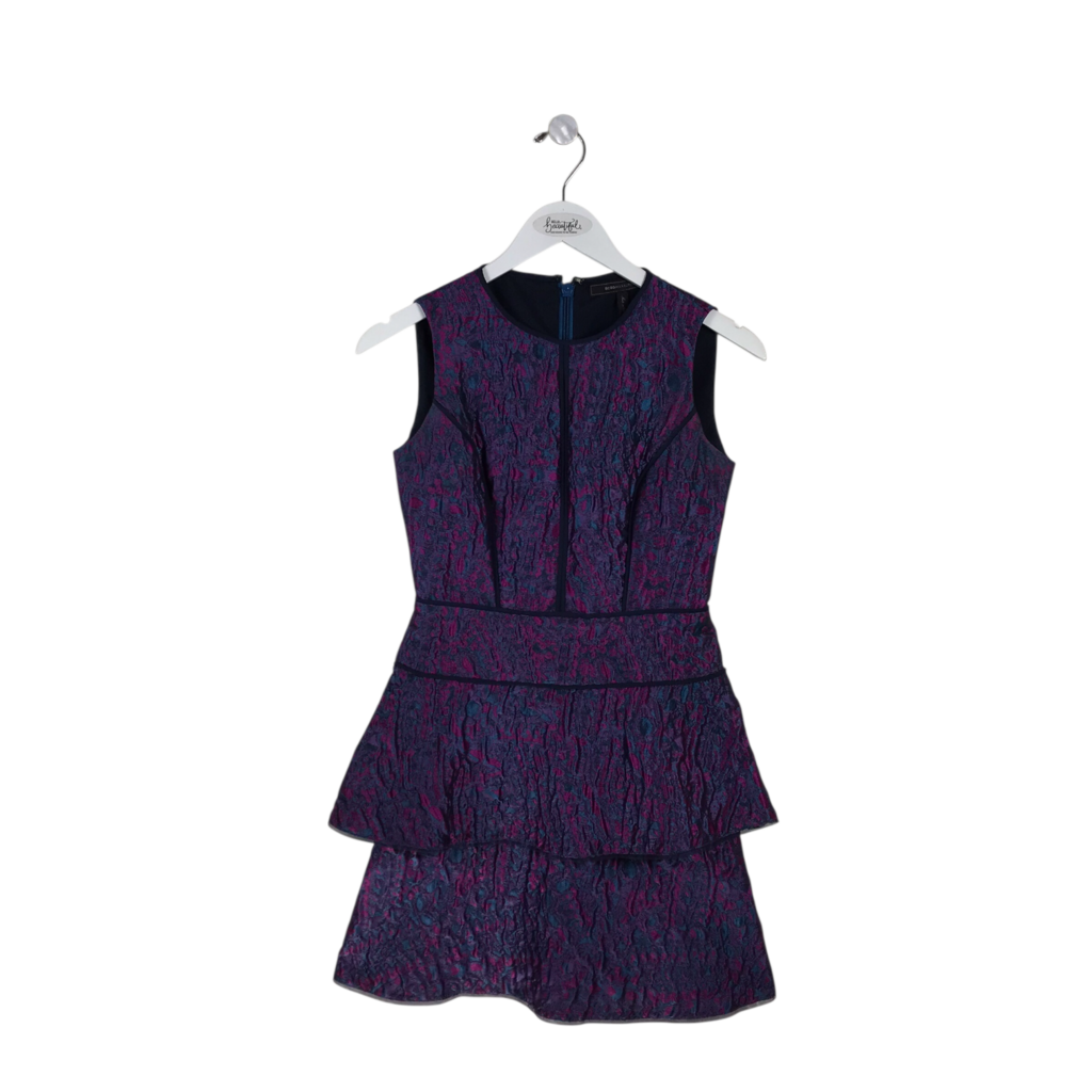 BCBGMAXAZRIA BROCADE PEPLUM SLEEVELESS DESIGNER DRESS TEAL FUCHSIA 2
