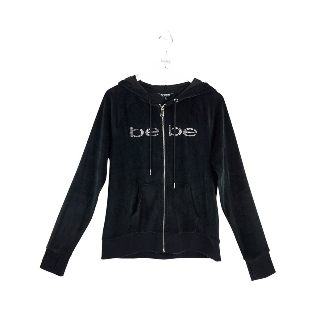 BEBE ZIPPER HOODIE JACKET BLACK LARGE