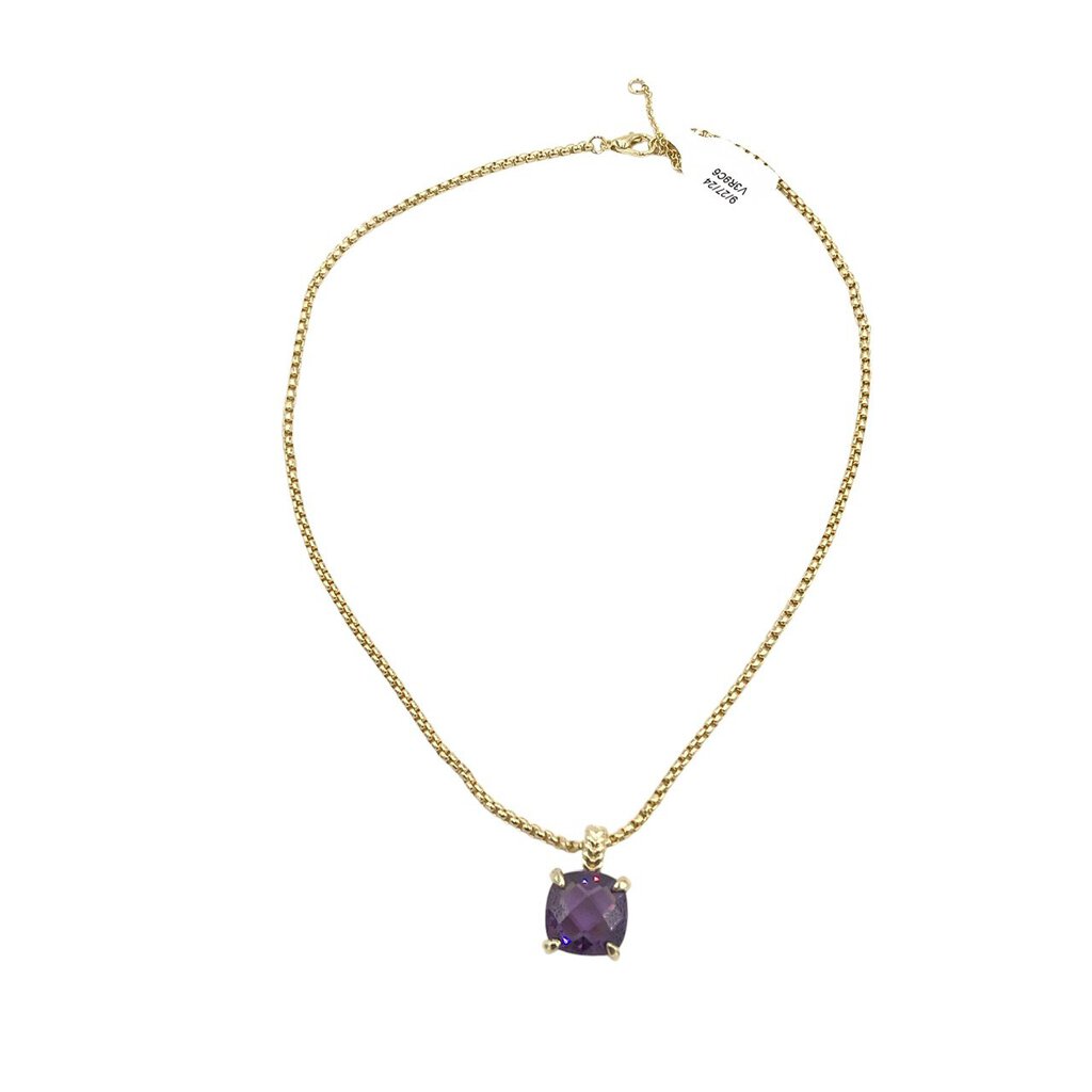 BOX CHAIN SQUARE PENDANT NECKLACE GOLD PURPLE