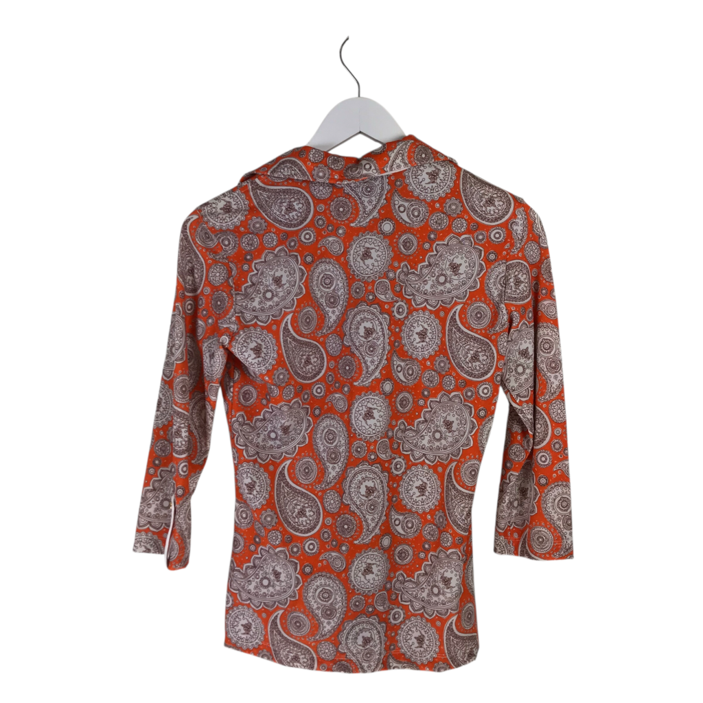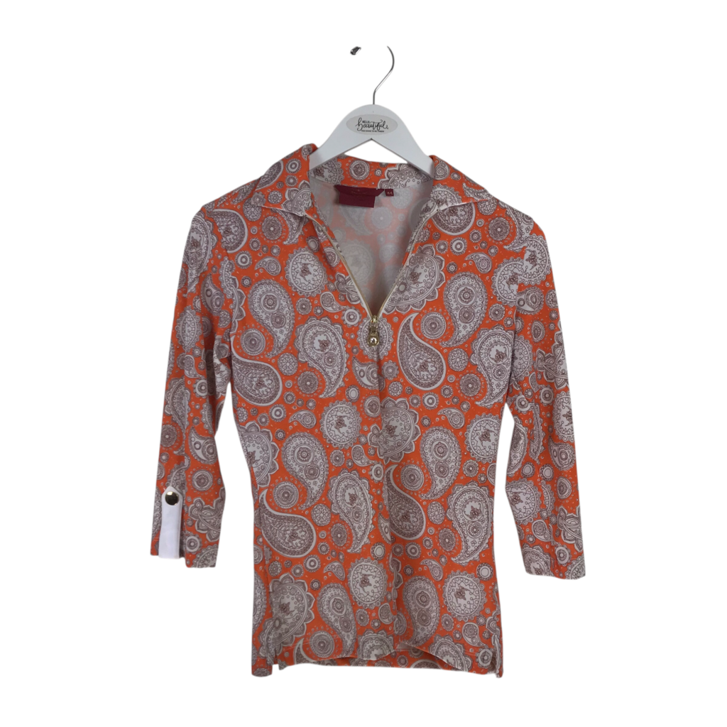 BRENDRATTI HALF ZIPPER PAISLEY DESIGNER TOP ORANGE WHITE MEDIUM