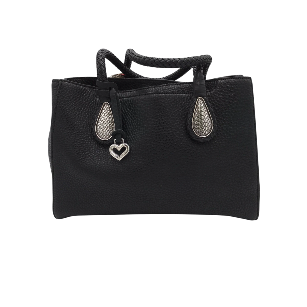 BRIGHTON RET$460 PEBBLED LEATHER TOTE HANDBAG BLACK SILVER