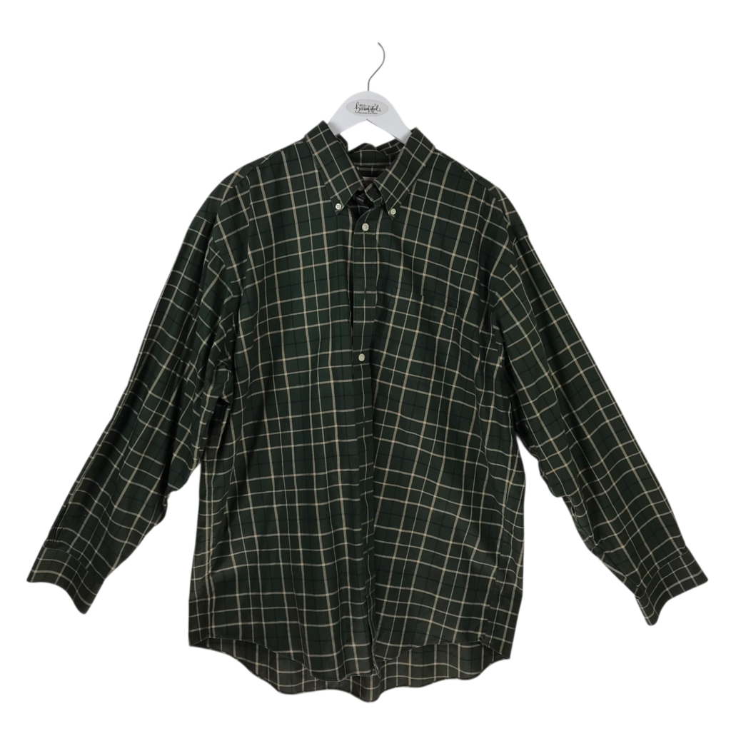 BROOKS BROTHERS PLAID LONG SLEEVE MEN SHIRT GREEN BROWN XL