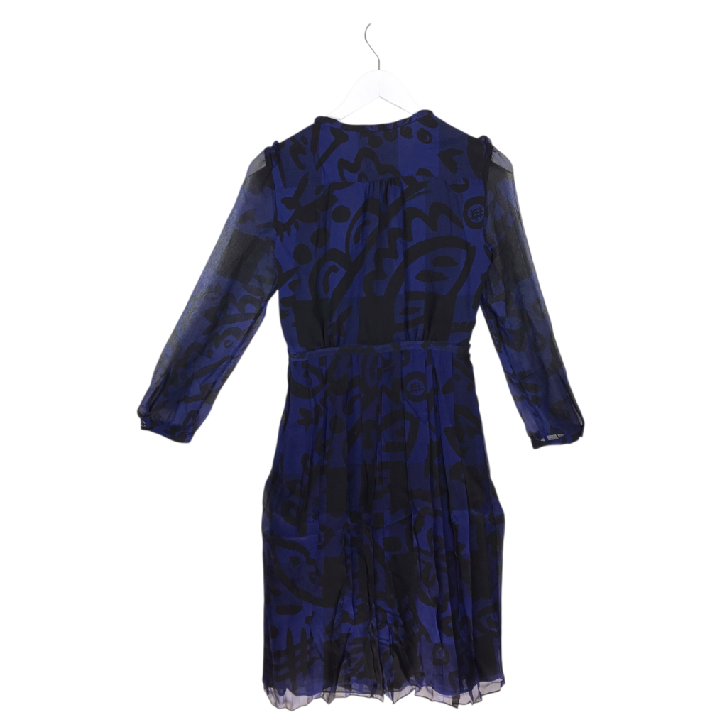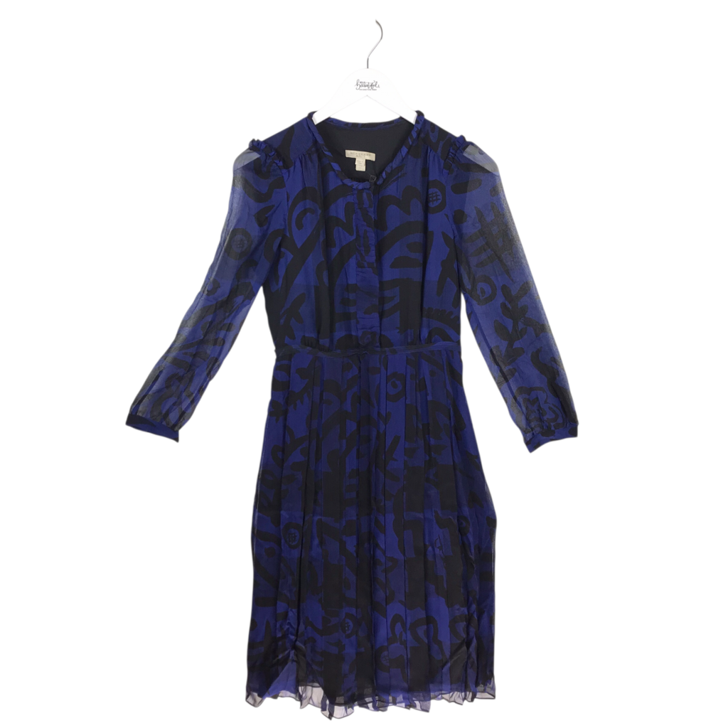 BURBERRY BRIT ABSTRACT PRINT LONG SLEEVE LUXE DRESS BLUE BLACK 4