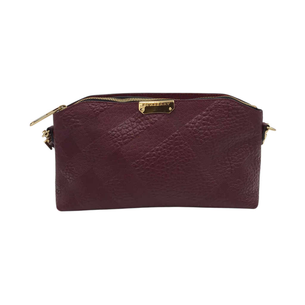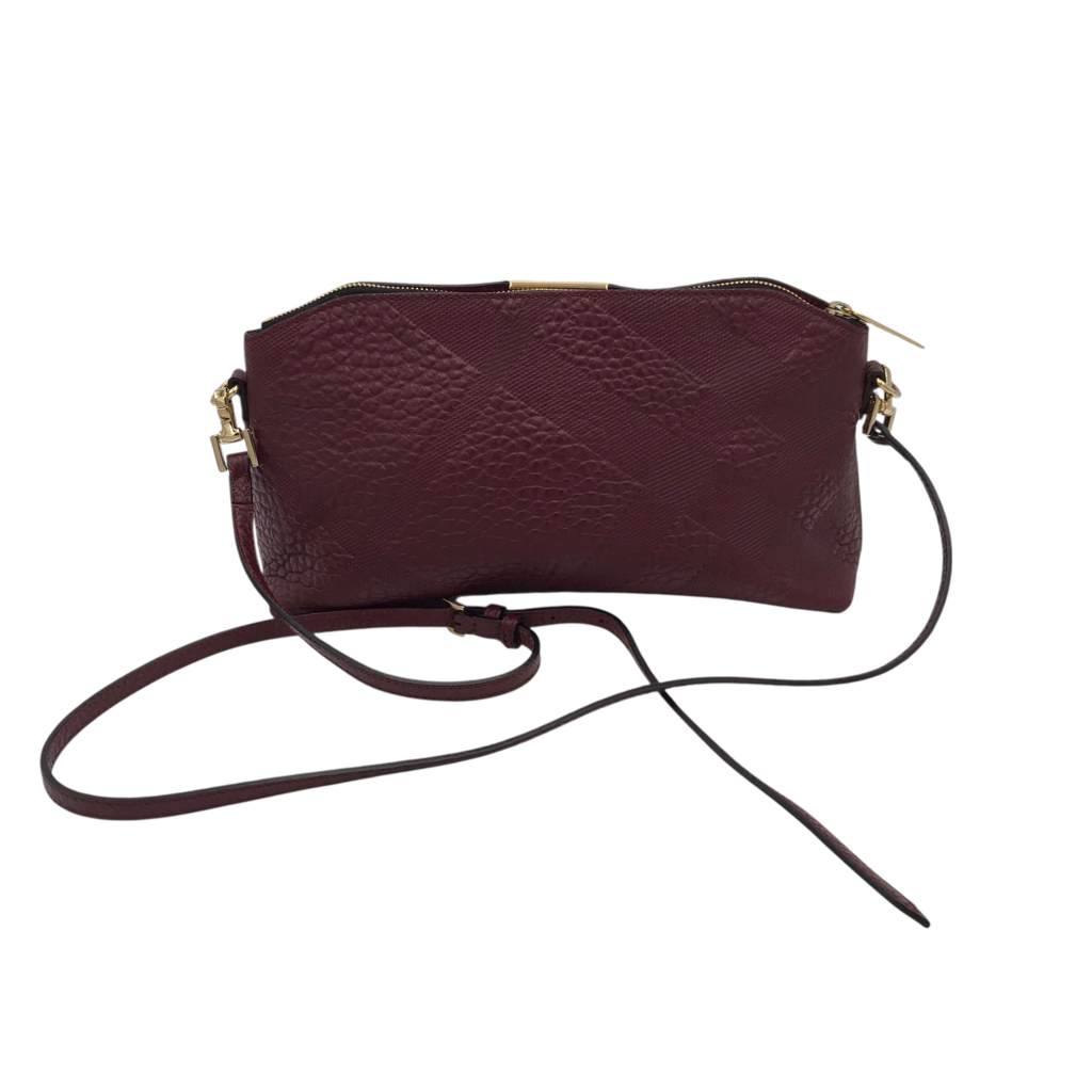 BURBERRY LEATHER CHECK EMBOSSED CROSSBODY LUXE HANDBAG BURGUNDY