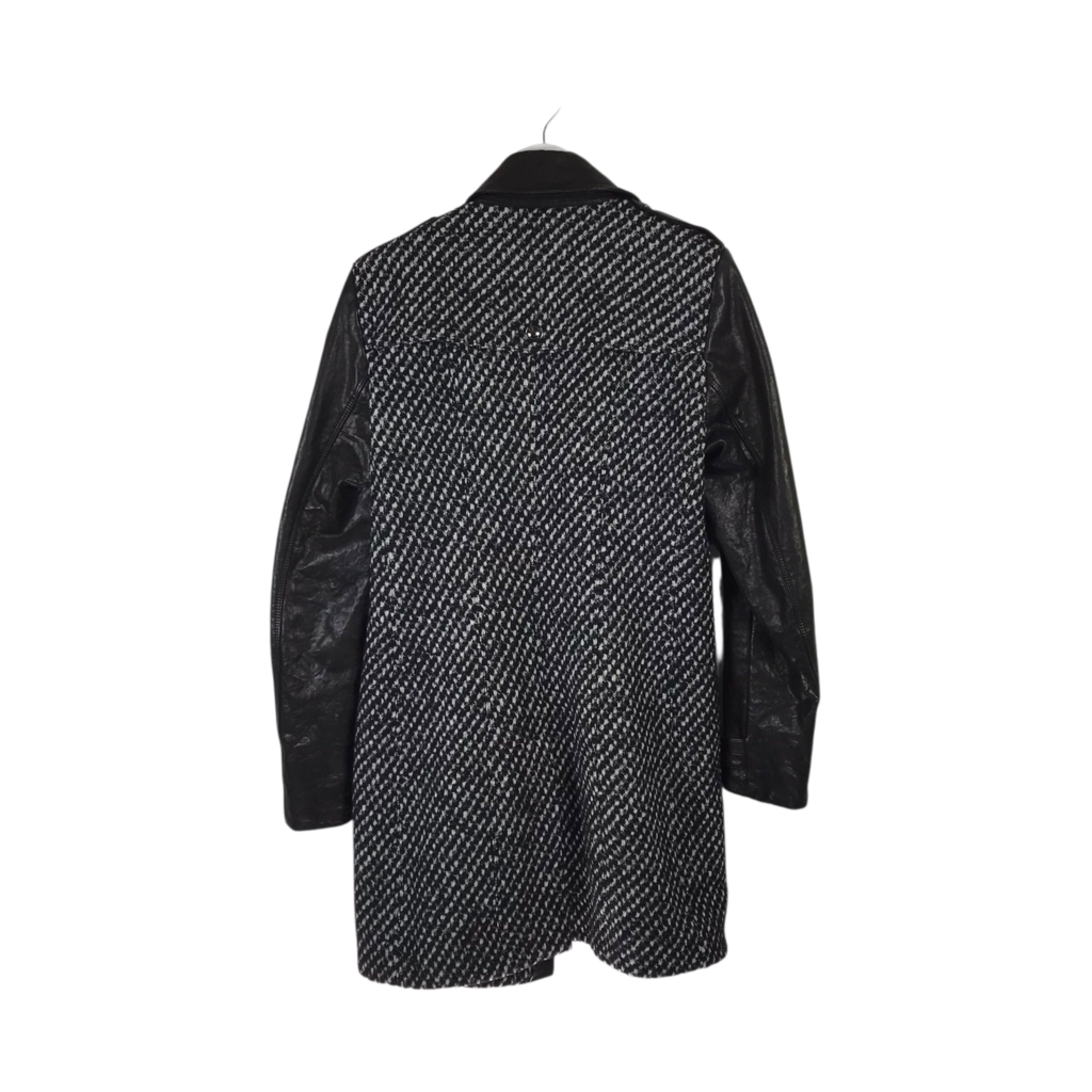 BURBERRY LONDON ASYMMETRICAL WOOL COAT WITH LEATHER TRIMS LUXE COAT BLACK WHITE 10