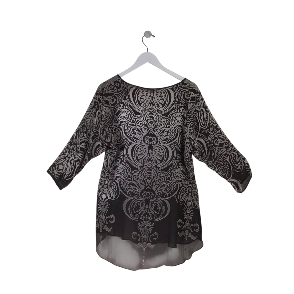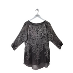 CALYPSO SILK VELVET TUNC DESIGNER TOP SILVER GRAY SMALL