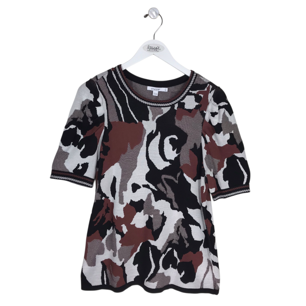 CHICO'S SHORT SLEEVE TOP BROWN WHITE 1