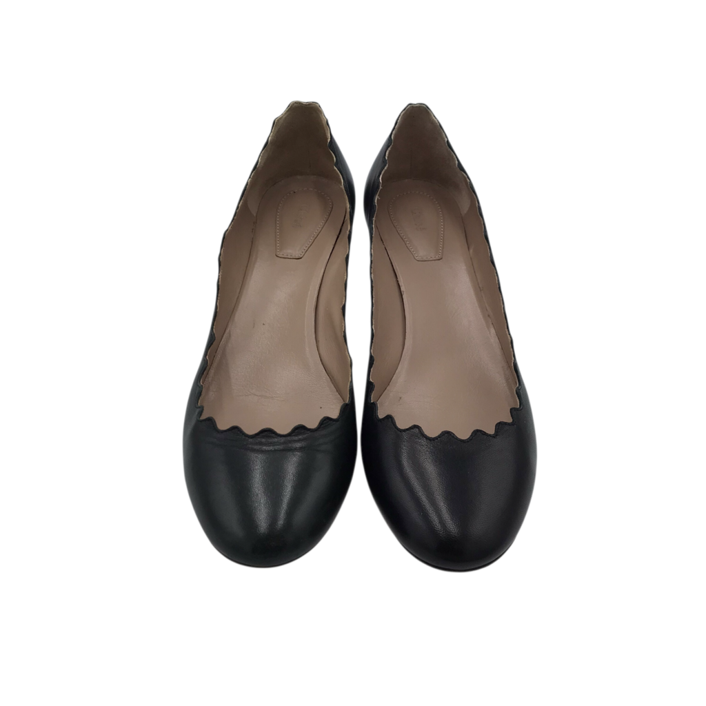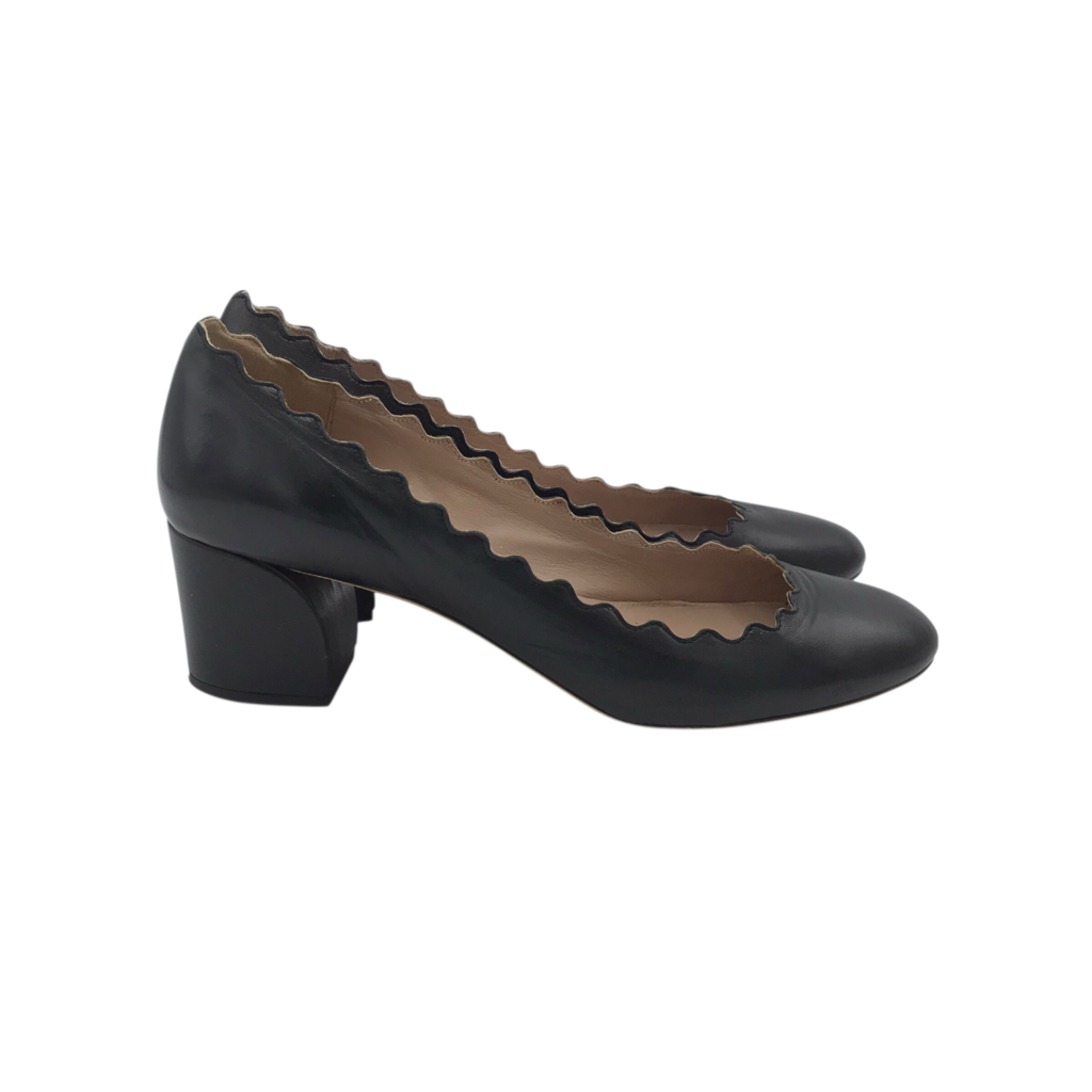 CHLOE SCALLOPED "LAUREN" BLOCK HEEL PUMPS DESIGNER SHOES BLACK 38