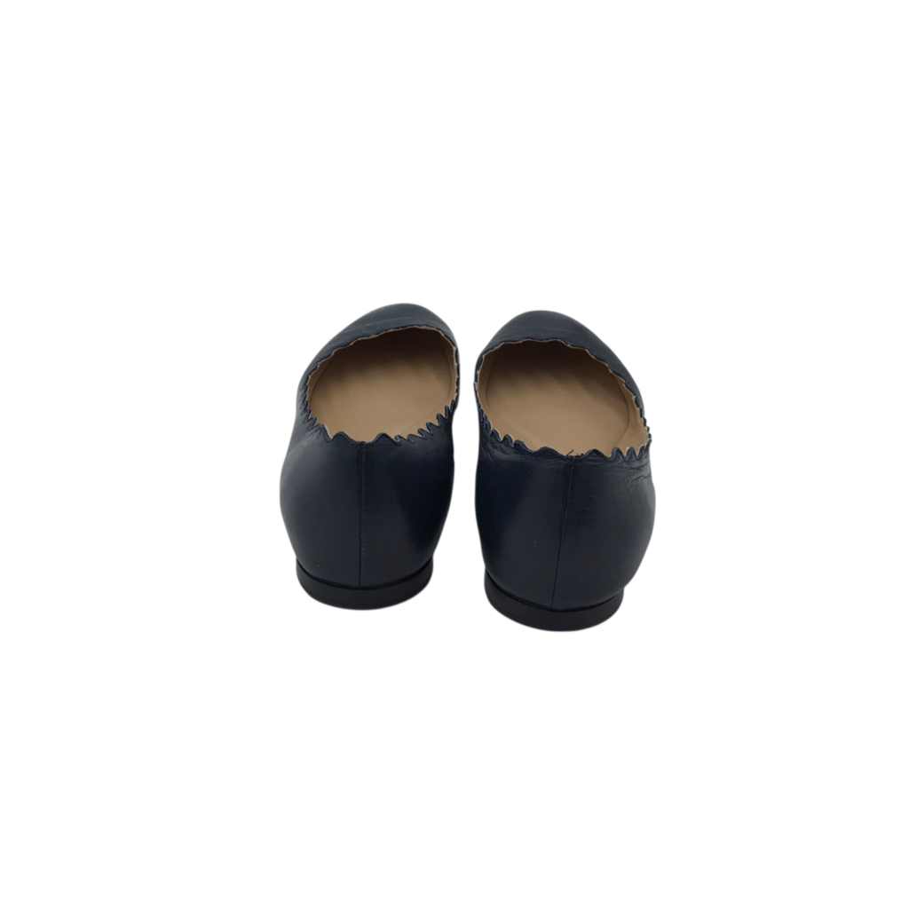 CHLOE SCALLOPED "LAUREN" LEATHER FLATS DESIGNER SHOES NAVY 38