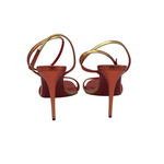 CHRISTIAN LOUBOUTIN "LOUBIGIRL" 100 ANKLE STRAP LUXE SHOES ORANGE/GOLD 37.5